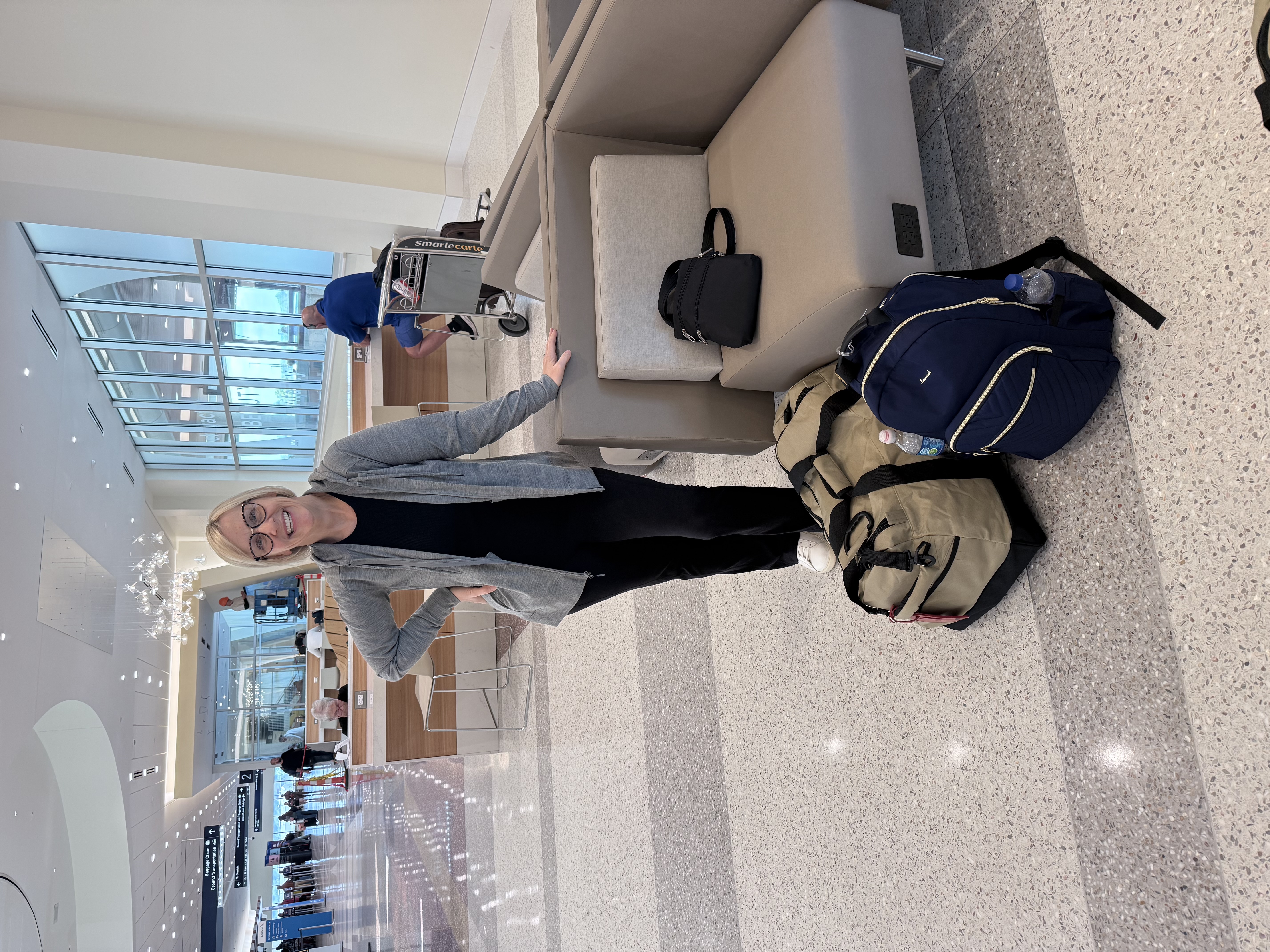 Flight outfit: Wool& pants, WoolX tank (Unbound Merino LS tee in backpack for cold plane), WoolX hoodie, Birkis sneakers