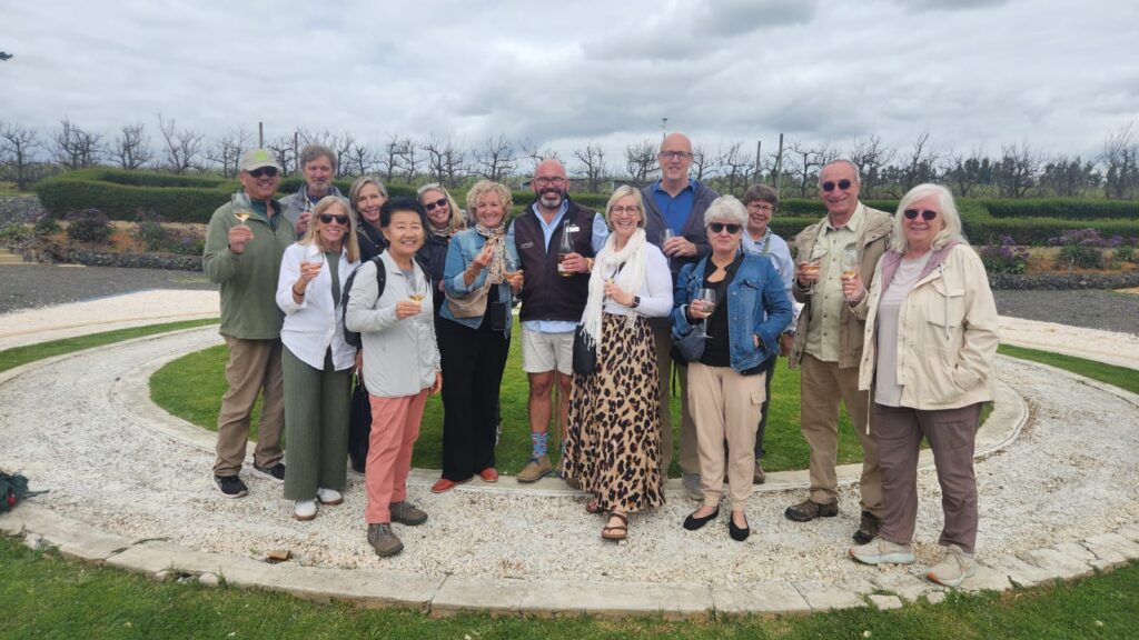 Cape Town winery. Steve in WoolX polo, me in Unbound Merino tee, linen scarf, Amazon skirt, Birkenstock leather sandals