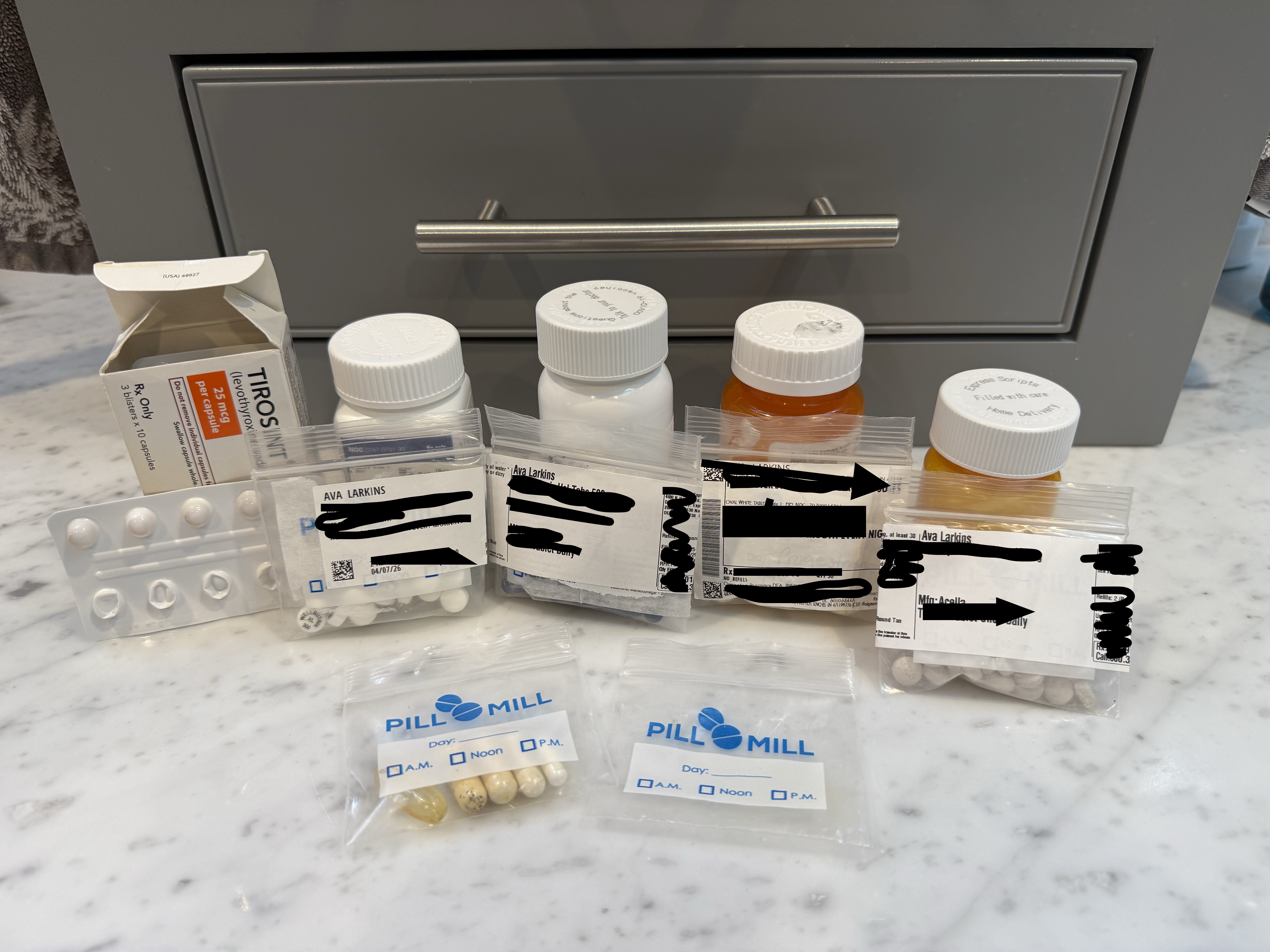 Meds in small pill bags to save space