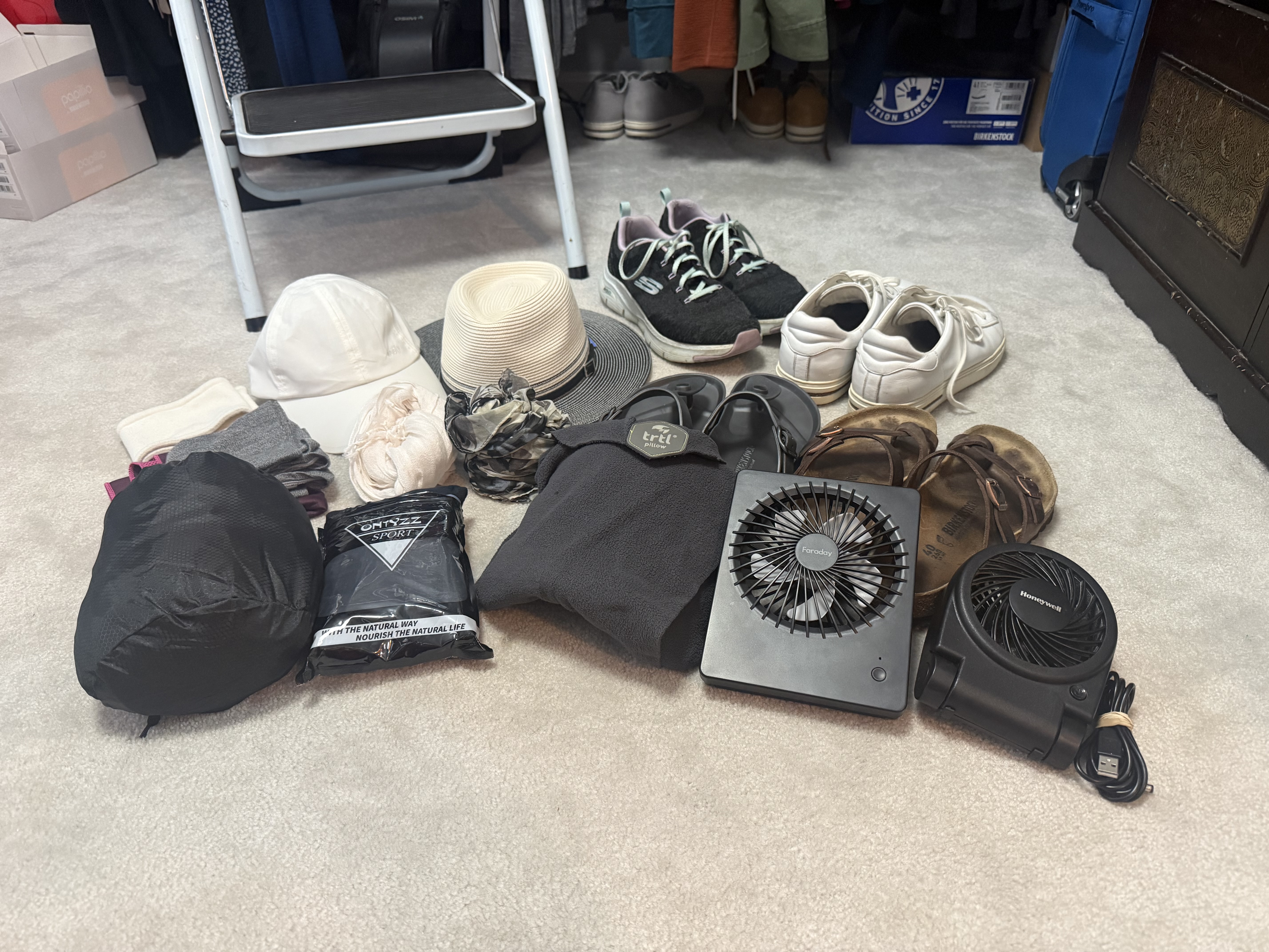 All the clothes I took: 2 tanks, 2 linen shirts, 4 SS tees, 2 LS tees, 1 blouse, 2 skirts, 4 pants, 2 hoodies, 1 jacket