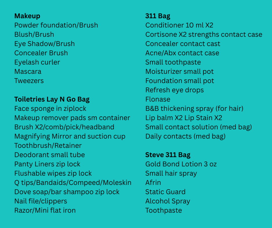 We each packed in a carry on and a backpack for this trip, so we were limited on the amount of liquids we could carry based on TSA regulations. We pared down our necessary liquids, brought some solid products, decanted liquids into smaller containers, and purchased sunscreen at the small gift shop at the Marriott on our first day. You can read more about packing hints for all trips here and my TSA liquid hints for all trips here. Since I use more liquid products than Steve, we share our 311 bag space. I used my 22″ Travelpro Maxlite 5 two wheel rolling bag, which actually measures 23″ tall, and an 18″ Lovevook backpack. We flew in United’s Premium Economy cabin, which has dedicated overhead bin space. I had no issue fitting the Travel Pro bag in the overheads. United does not have a weight maximum for cabin bags or personal items. When we fly together, we cross pack one outfit in each other’s bag to mitigate our possible losses if they make us gate check our bags and they lose one of them. We also pack one outfit in our backpacks.