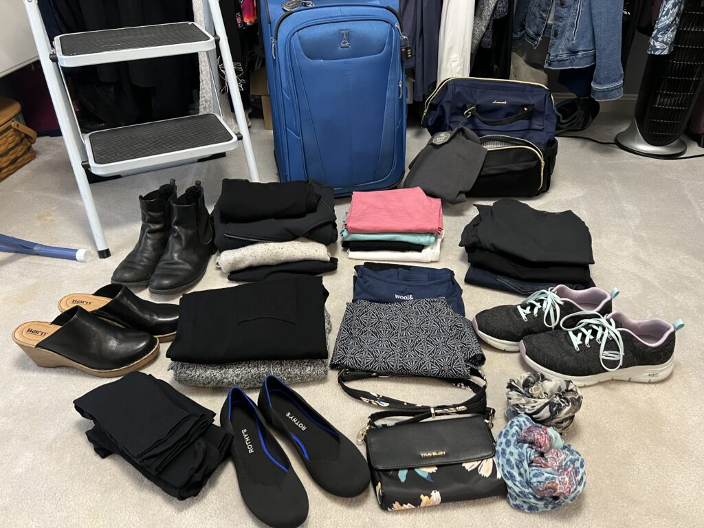 There are tons of capsule wardrobe videos and articles available online, so I am not going to re-invent the wheel here. The concept is simple. Choose clothing items in a similar color palette with individual pieces that can be mixed and matched to create different outfits. There is no set rule for how many of each clothing item you should pack. You may have heard of the 5-4-3-2-1 rule, or the Sudoku method, or three tops for every bottom, or any number of other packing strategies.