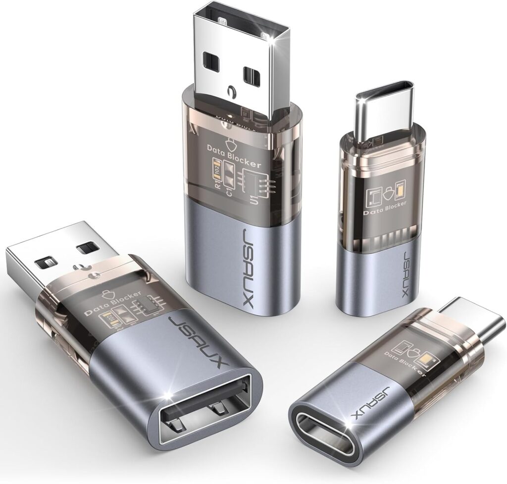 - Use a USB data blocker device. These small widely available adapters let you charge safely by blocking the data pins inside a USB connector.