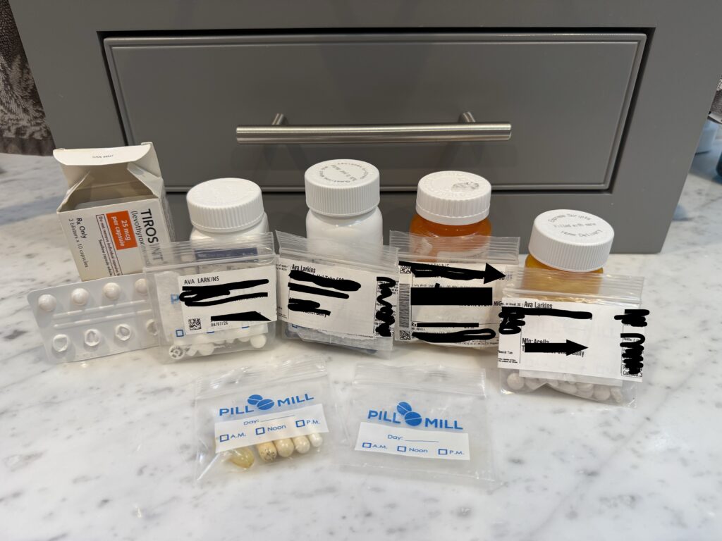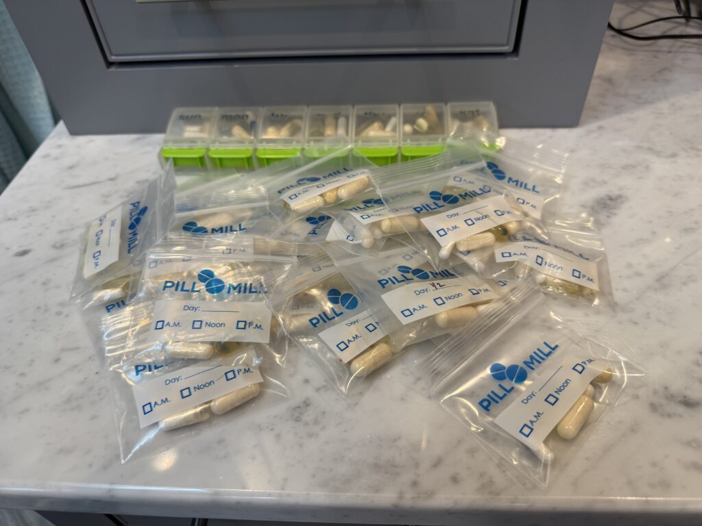 My vitamins and supplements in pill bags