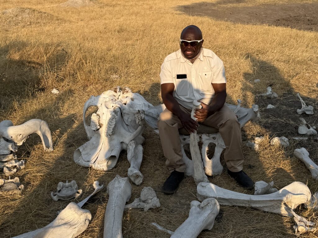 Our fabulous guide Douglass with an elephant skeleton