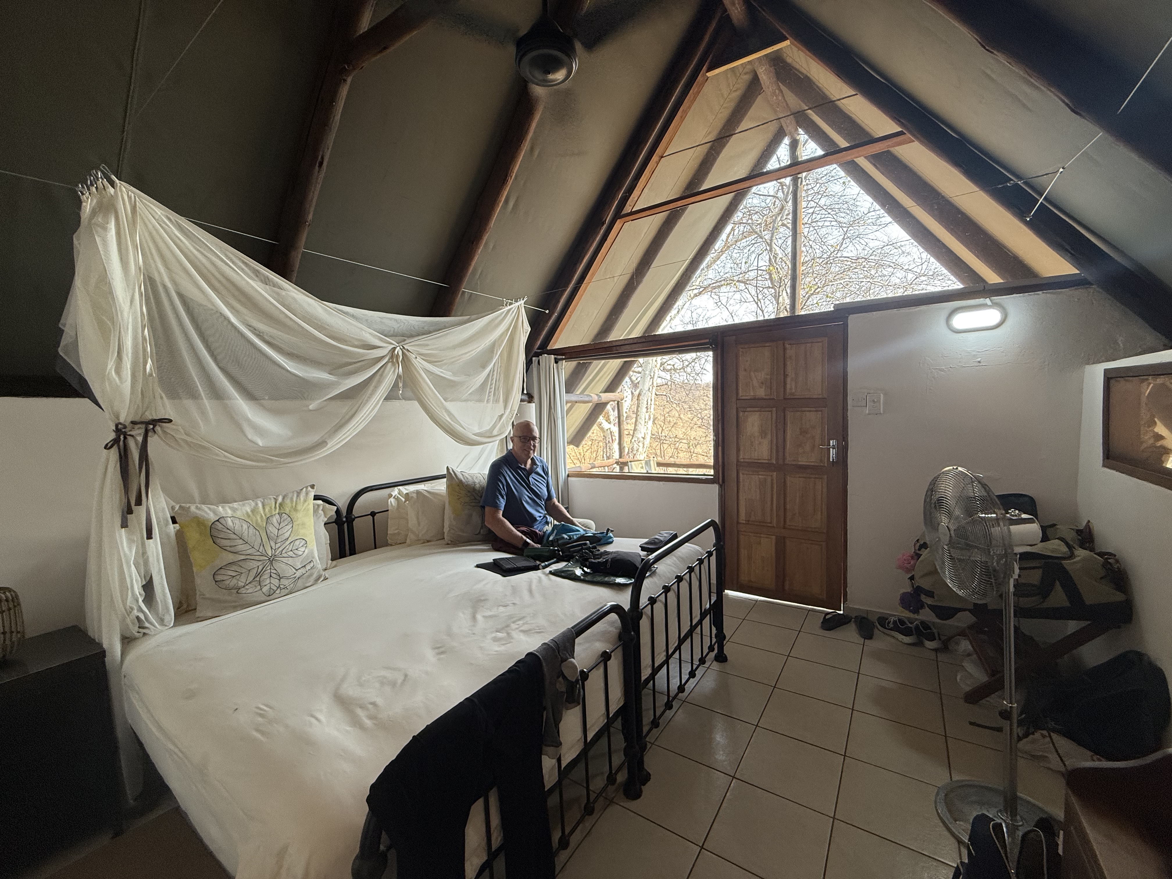 Once we arrived, we had a lovely dinner, had a drink by the fire pit, and headed to our tents for showers and beds. Our tent was #8 (there are 9), but because of the way the path was set up, it was the longest walk to the lodge…but that’s OK, I needed the steps to counteract the food! Here’s the complete blog post for today. https://twotravelover50.com/welcome-to-zimbabwe/