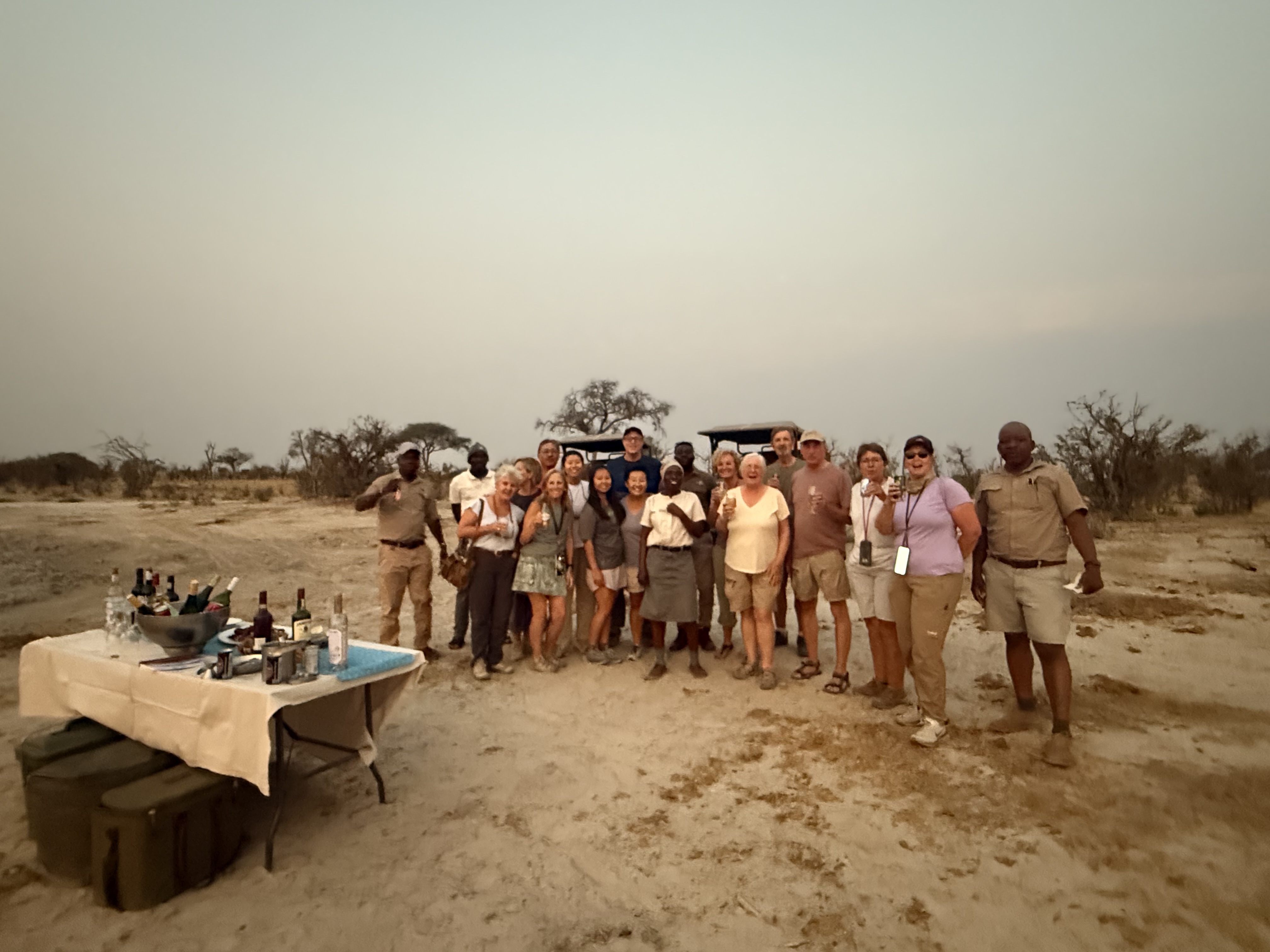 Our group having sundowners in the bush in Botswana
