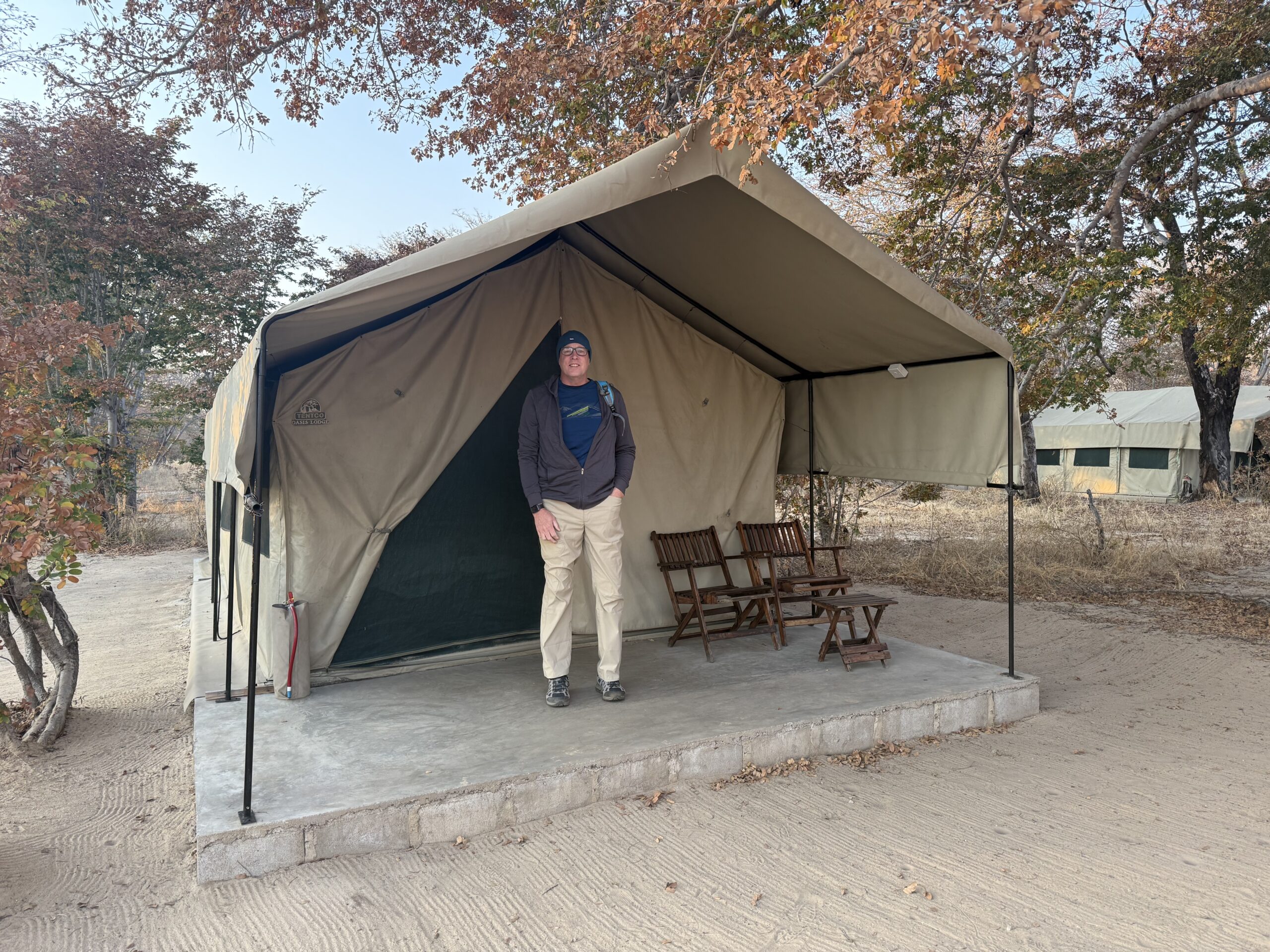 The OAT website lists certain camps for this itinerary, with the caveat that you may be in a similar camp. We actually ended up at two of the advertised camps, and one of the sister camps. Your stay at each camp is three days, and the day you leave, another group comes in that afternoon. They have multiple camps for each location, and they run this tour from March through November. It is a very well-oiled machine. We stayed at Makalolo Camp in Zimbabwe (advertised is Kashawe Camp), Lufupa River Camp in Zambia (advertised is the sister camp Lufupa Tented Camp), Baobab I Camp in Botswana (advertised as Baobab Camp and there is Baobab I and II next to each other), and Santawani Camp (advertised) in the Okavango Delta. All had amazing staff and provided a stellar experience.