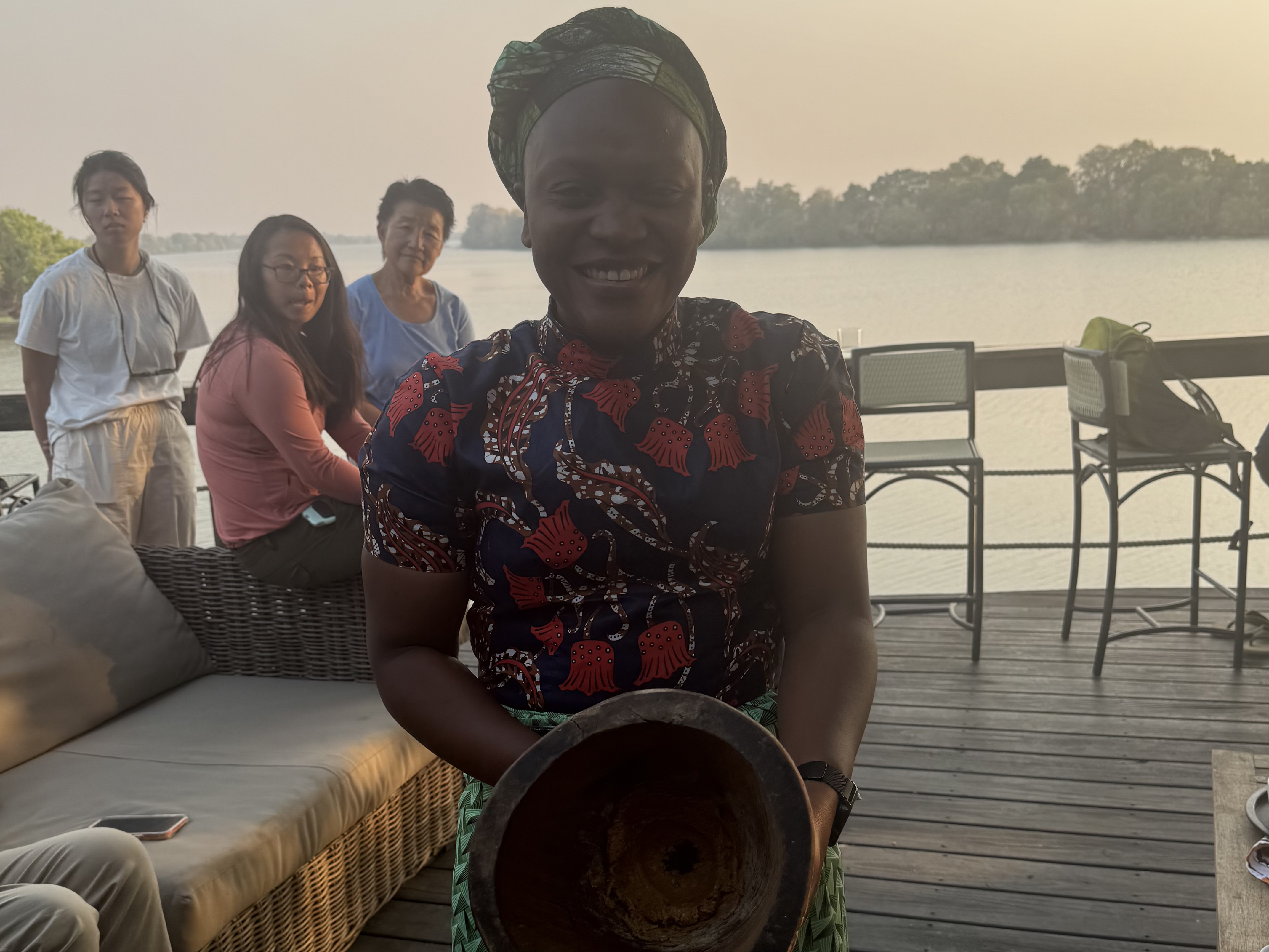 We had a bit of free time in the afternoon and it was Africa hot today, 97 deg F. Most of us stayed in the lounge under the big fans. Our TEL, Wonder, gave a demonstration on how to make Baobab juice, something he did as a young man growing up in a village in Zimbabwe. We all got to try it and it tasted surprisingly good, like a tangy yogurt. Afterward, the ladies in the camp gave a demonstration on basket weaving and we got to try our hand at it. I sucked, but that’s not a big surprise. I’m not at all crafty. They had tons of beautiful handmade baskets, wall art, bowls, handbags and jewelry to purchase if you so desired. Many of us made purchases, including me. You will settle up your bill in USD, including these purchases, on the morning you depart.