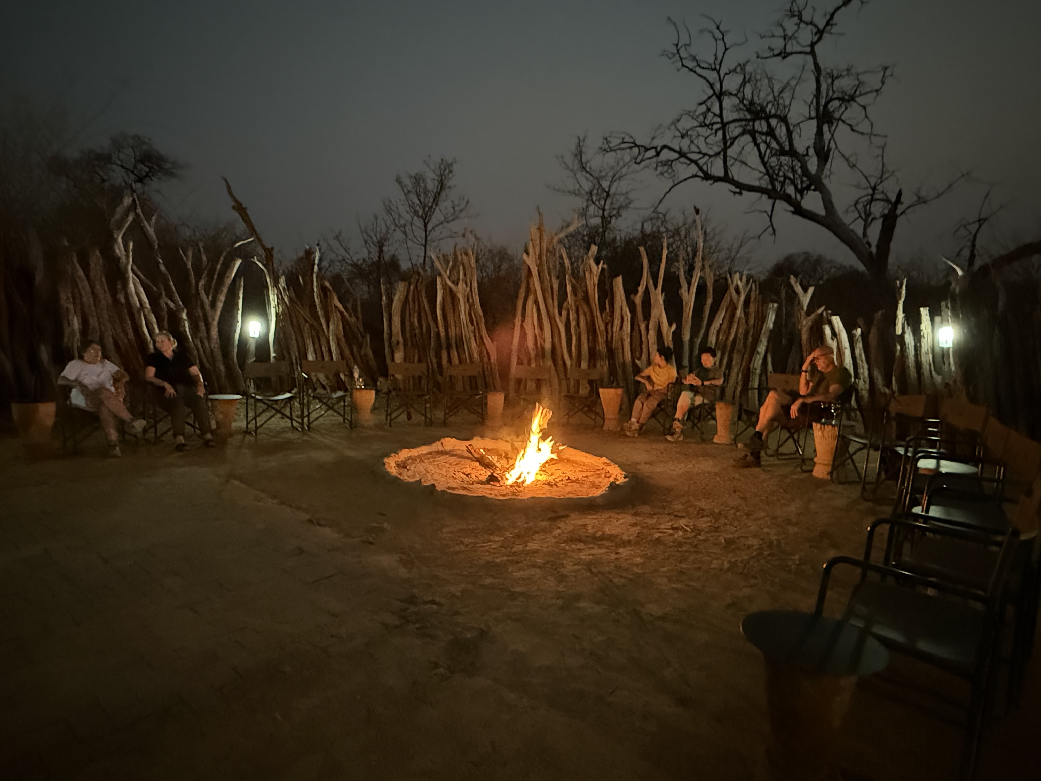 Dinner around the fire pit at Baobab Camp