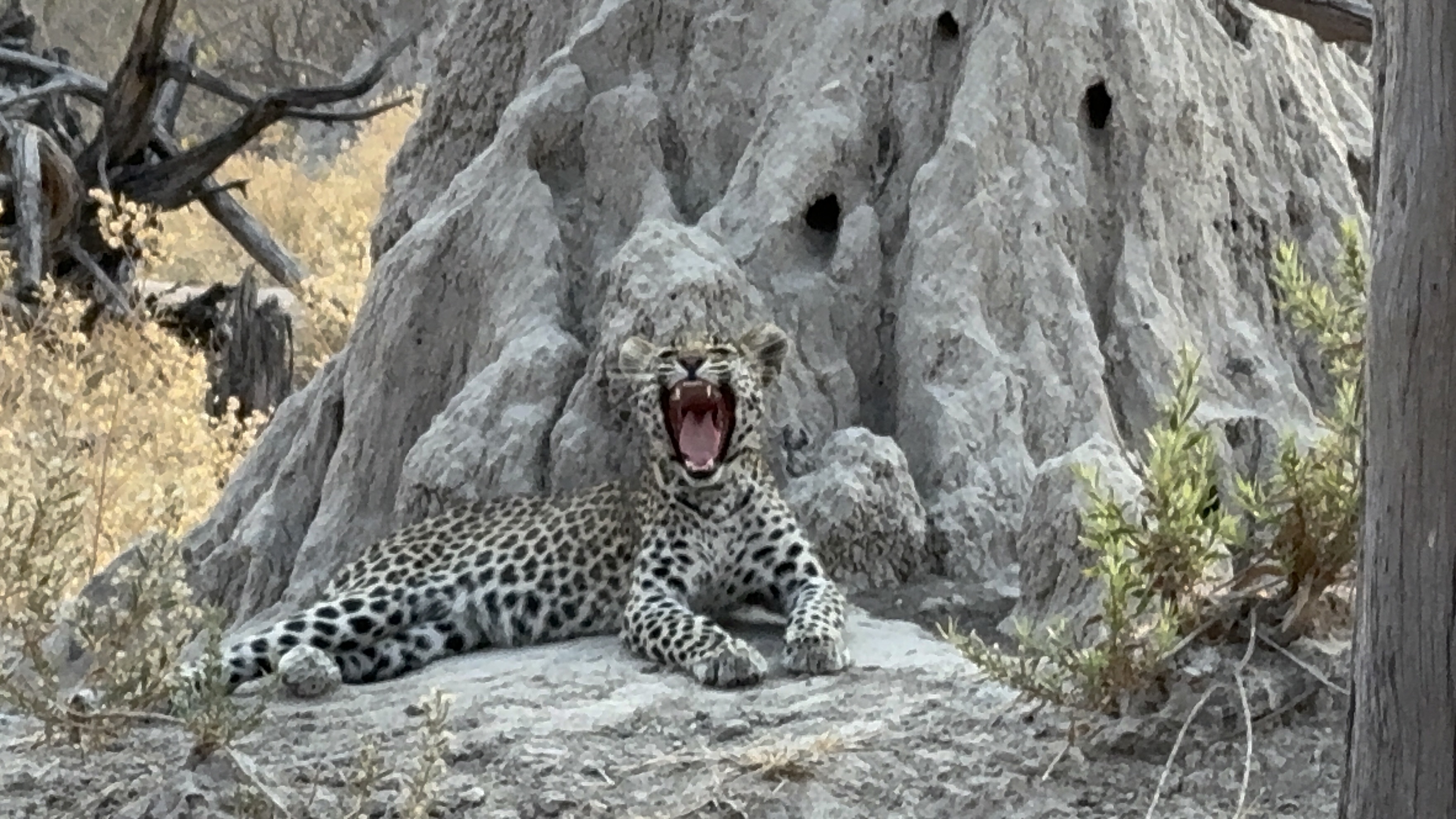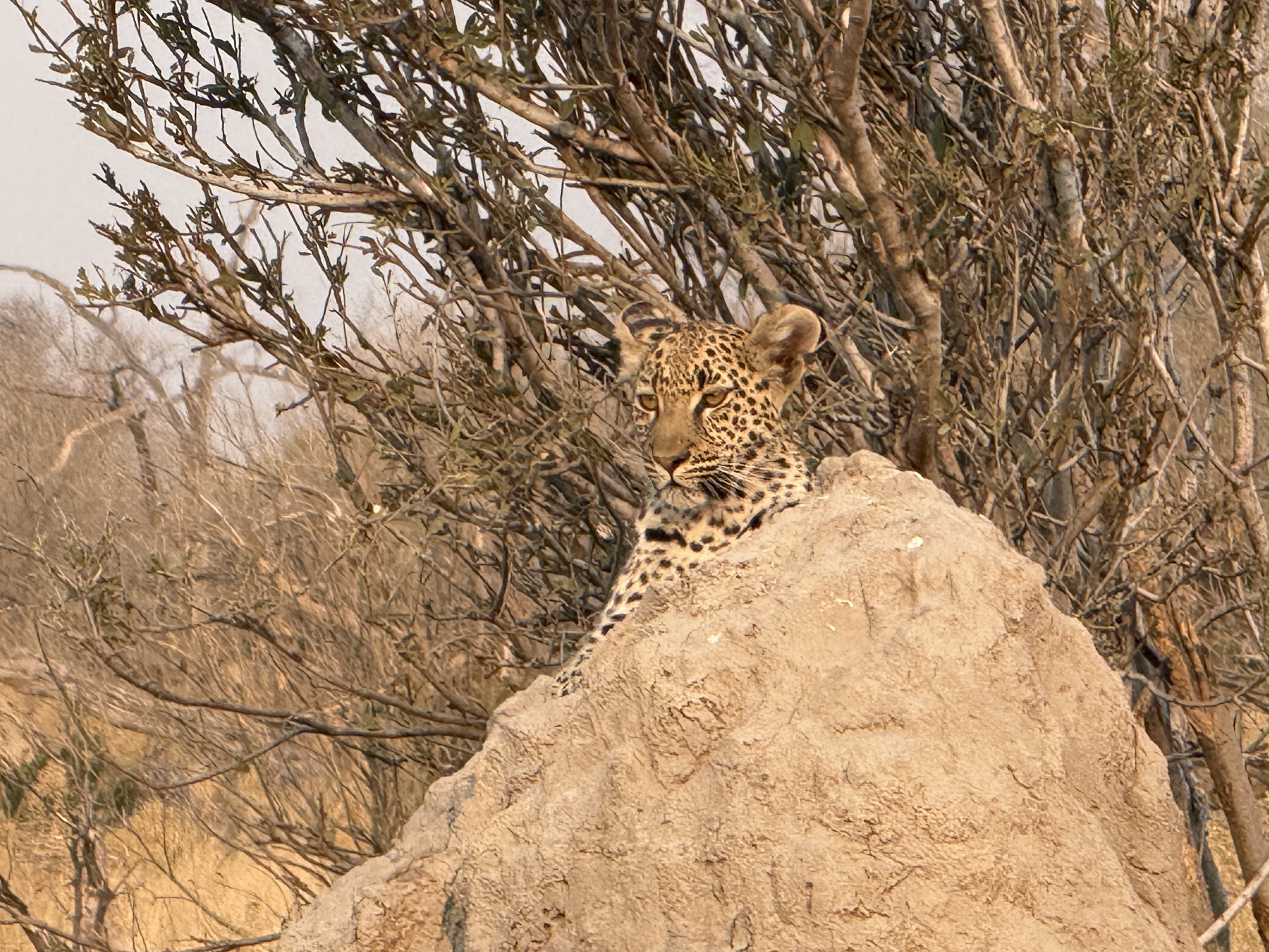 This morning we packed up to leave our beautiful Santawani Camp and all the fabulous camp staff and amazing guides. As we were heading to the airstrip, we came across the leopards again, and this time we got to see all three of them, mama and her two cubs, whom she has been slowly weaning over the past couple weeks. It was a treat to see them all together finally.