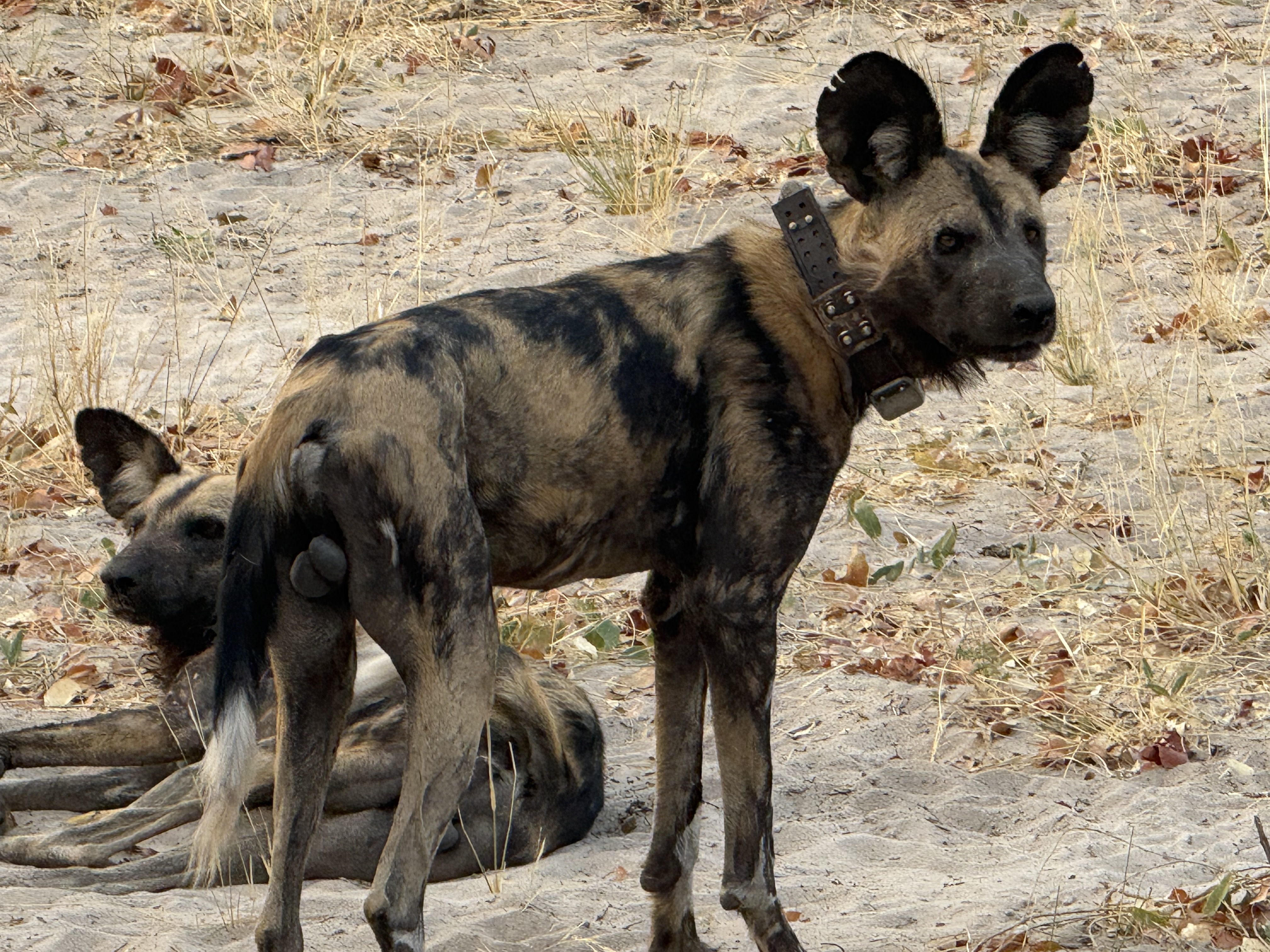 Male painted dog, collared for research
