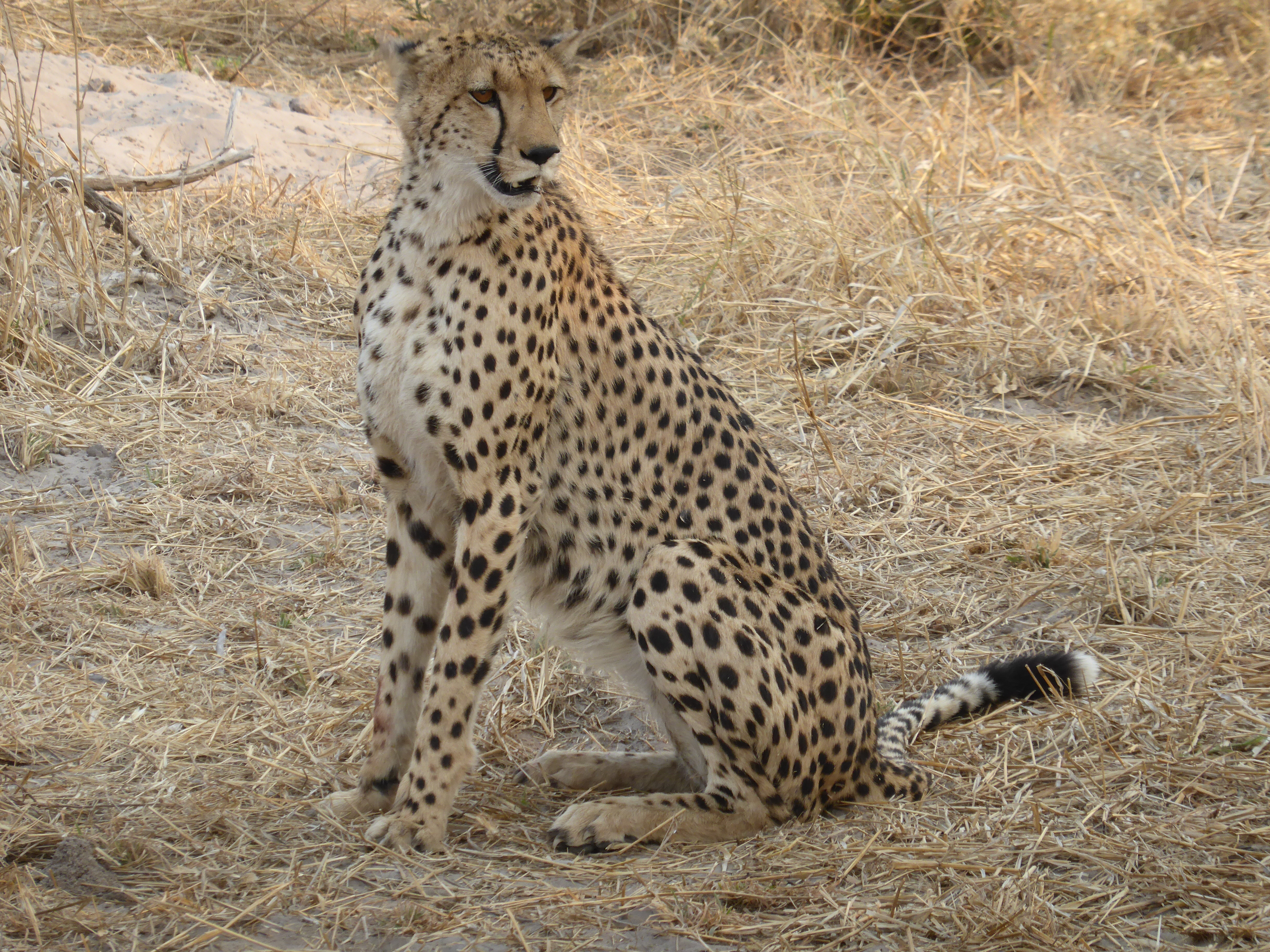Today was cat and dog day at Santawani!  On our early morning game drive, we were lucky enough to track a leopard with a fresh kill, and watch her rest from the hunt before she started feeding on it. We did not see her take down the small impala, but it was a beautiful thing just to observe her in her natural habitat. She didn’t even care that we were there. As if that weren’t enough, after quite a bit of off roading, next our guides tracked four young cheetahs to their morning resting spot under a tree. They also had full bellies from a kill. It was a group of young males that were familiar to the camp guides. Our guide Ona said that he had never seen five cheetahs in one day, so we felt very fortunate to have seen all of them today. We were so very impressed with knowledge and skills of our guides, as well as their kindness, their humor, their willingness to share personal stories, and educate and enlighten us, while at the same time appreciate us being there, which allows them to do the jobs they so love.