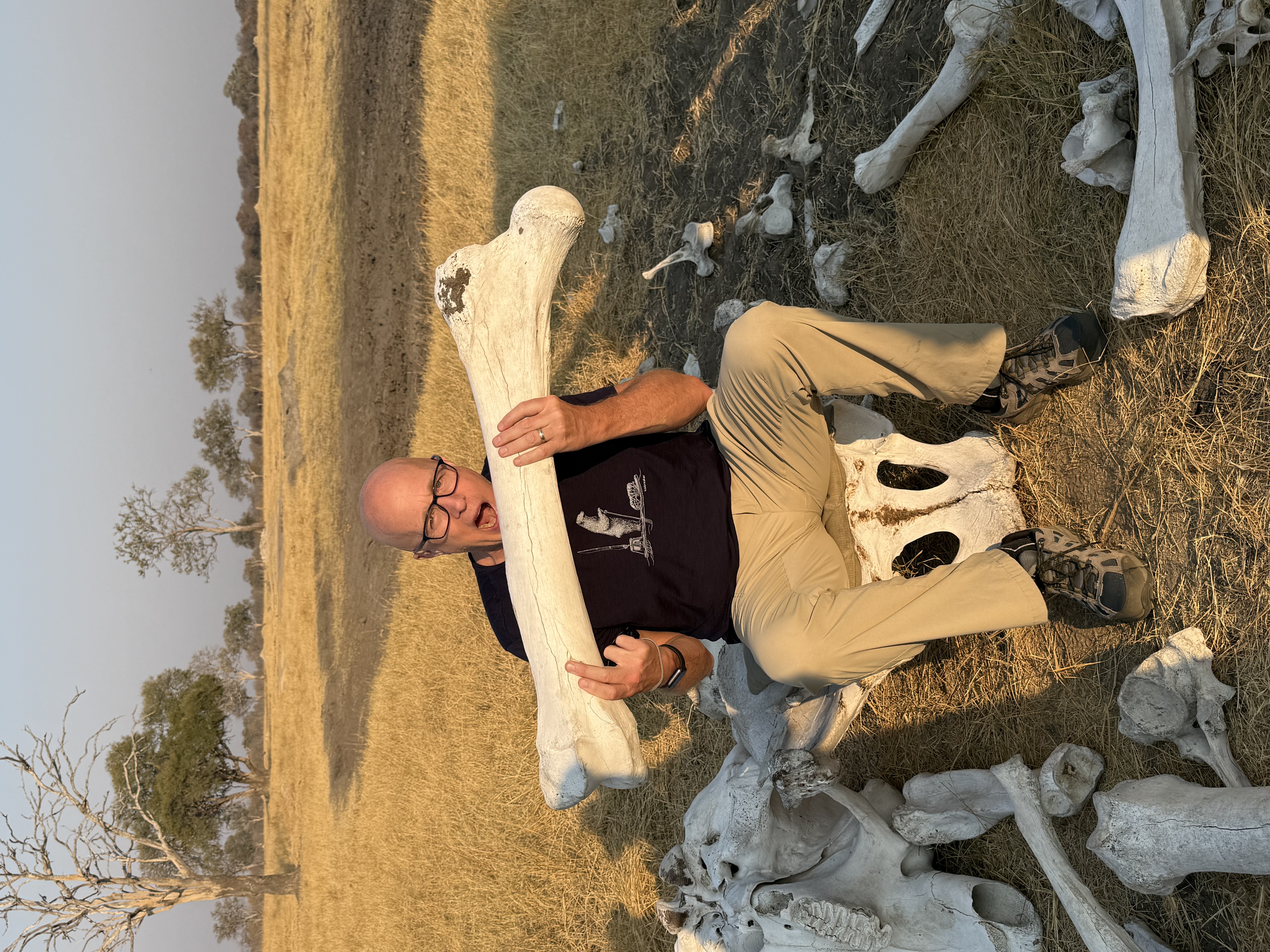 After the talk, we sat out on our early evening game drive where we finally saw elephants! Tons of elephants. There is an estimated 45,000-65,000 elephants in Zimbabwe, and they are beginning to be overpopulated, so the government is looking at options on how to deal with that. We also saw lots of Zebras, watched a huge lone male elephant eat from the top of a tree from about 20 feet away, sat in a chair made of elephant bones, and talked about poop. Elephant poop, that is. We pulled over to another watering hole for Sundowners, which are drinks in the bush at sunset. It could not have been more amazing with elephants and hippos in the water behind us and the setting sun shining down on us. This place is magical.