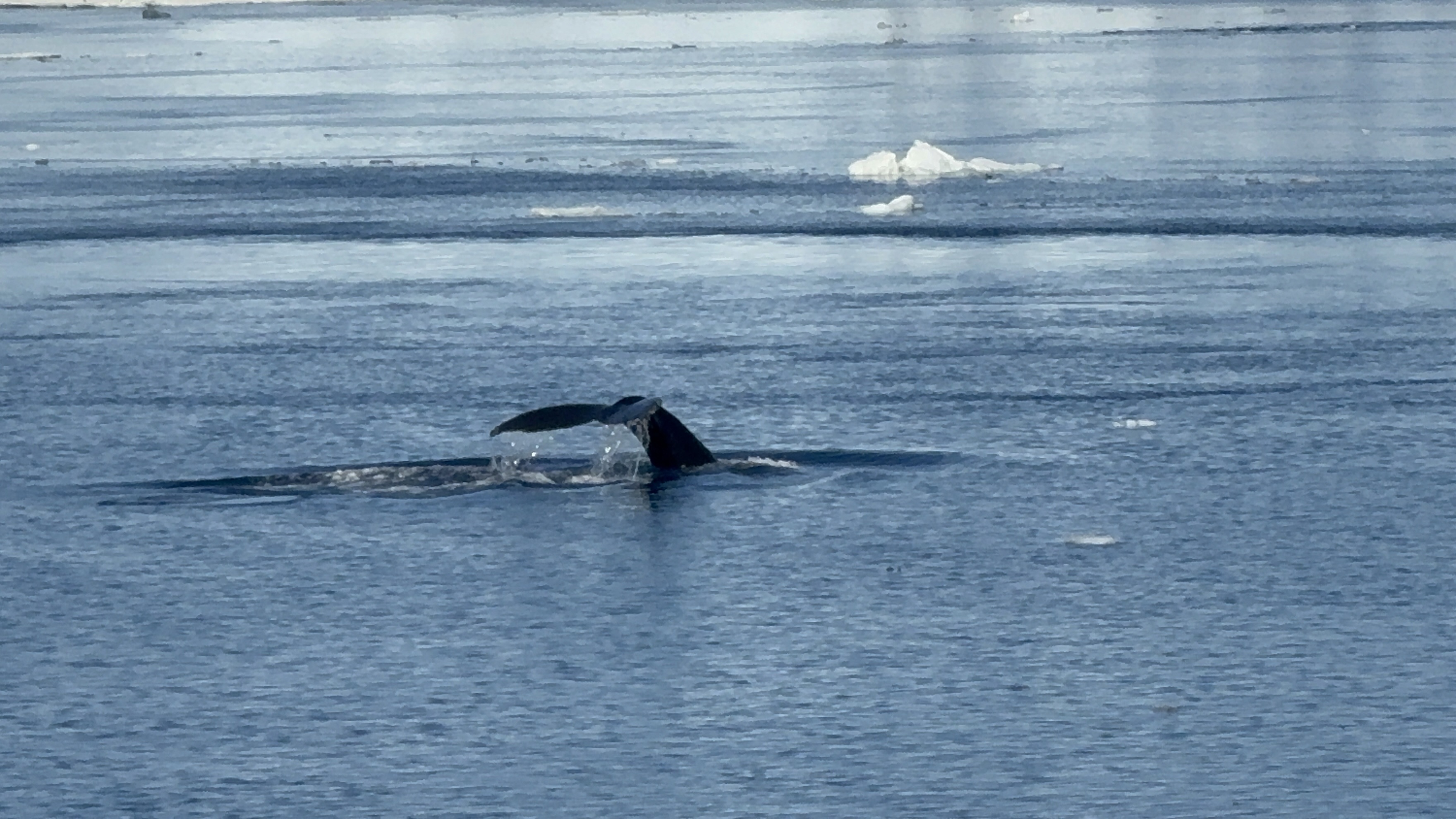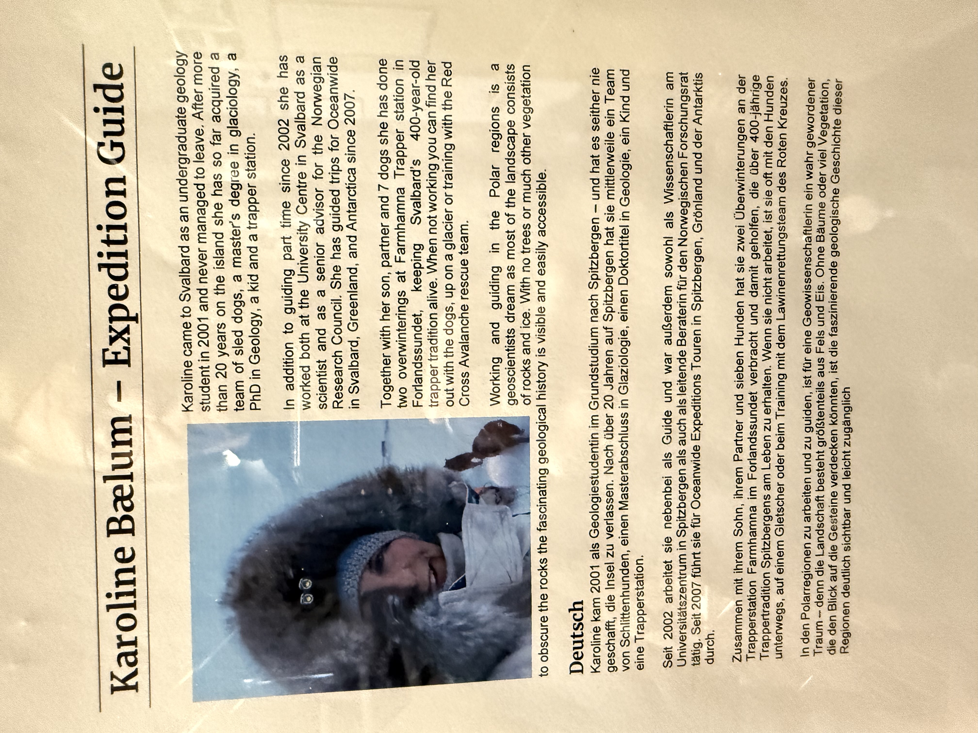 On Friday, our guide Karoline, who has a Master’s in Glaciology, a PhD in Geology, and used to have a “real job,” gave a presentation on her several years spent owning and living in a remote trapper cabin in Longyearbyen on the Norwegian island of Svalbard, with her partner and one year old son. It was fascinating to hear about life in such a remote location. They hunted reindeer and trapped Arctic foxes for income, and had a team of sled dogs for transportation around their cabin. They had to fend off a few polar bears, especially one that kept breaking down their door (!). The video of her partner in his boxers and Muckboots shooting a flare gun at a very persistent polar bear was hilarious and frightening at the same time. (I edited my previous post with guide photos of Marcelo, Annina, and Sven.)