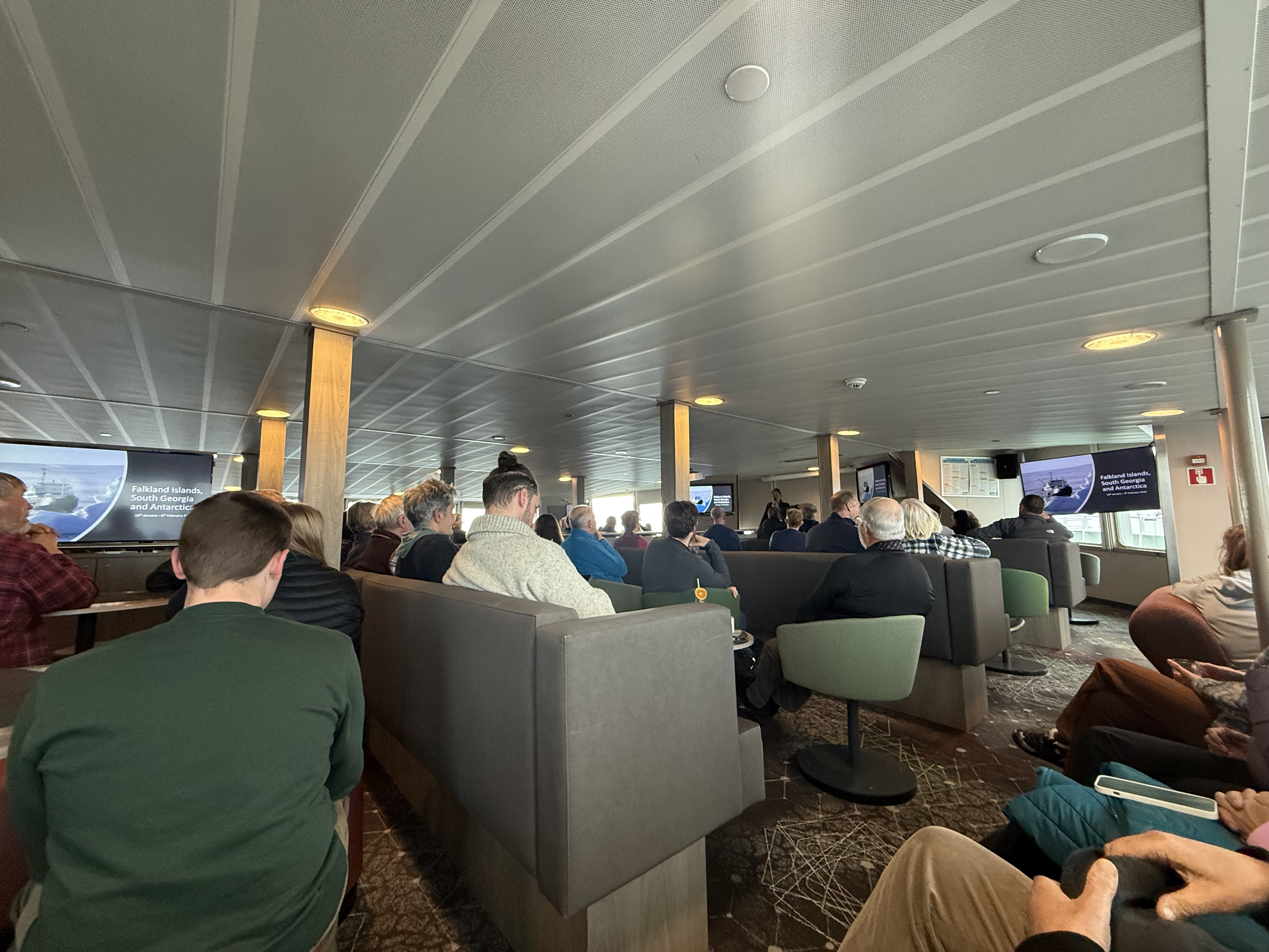 In the afternoon, we had our Plancius Pub Quiz. We had four rounds of ten questions each, related to things we had learned about The Falklands, South Georgia, Antarctica, and the staff and ship. Our five-person team, which we shared with two gentlemen from the UK and a gentleman from North Carolina, came in 5th out of about 15 teams, and was a respectable finish. We had the Captain’s toast and a final gathering of the expedition team before dinner.