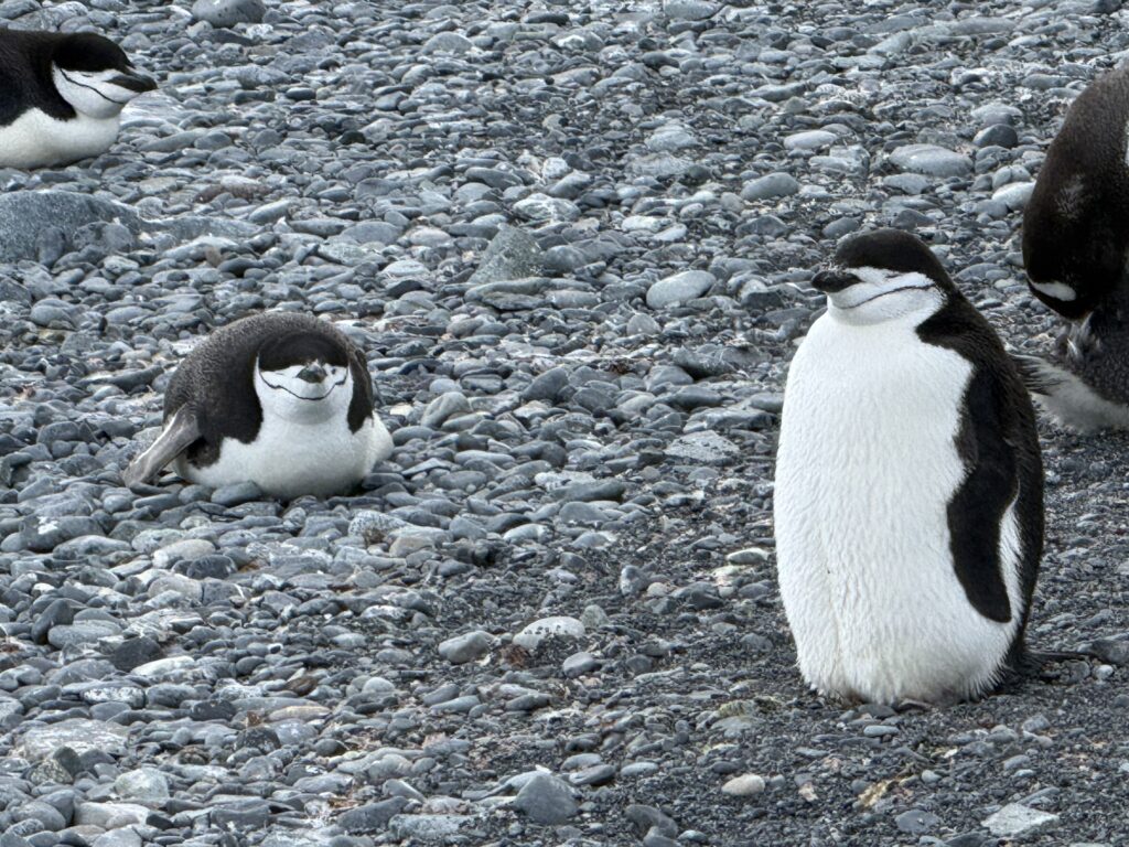 This morning we landed at Half Moon Island, where we finally got to see a colony of Chinstrap Penguins. We had only seen two on this entire trip, and both were single penguins in with other varieties. Chinstraps are the cutest, and they look like they are wearing little helmets strapped onto their heads. Their babies were not quite as far along in their molting process as some of the other varieties, so they were super cute and fluffy.