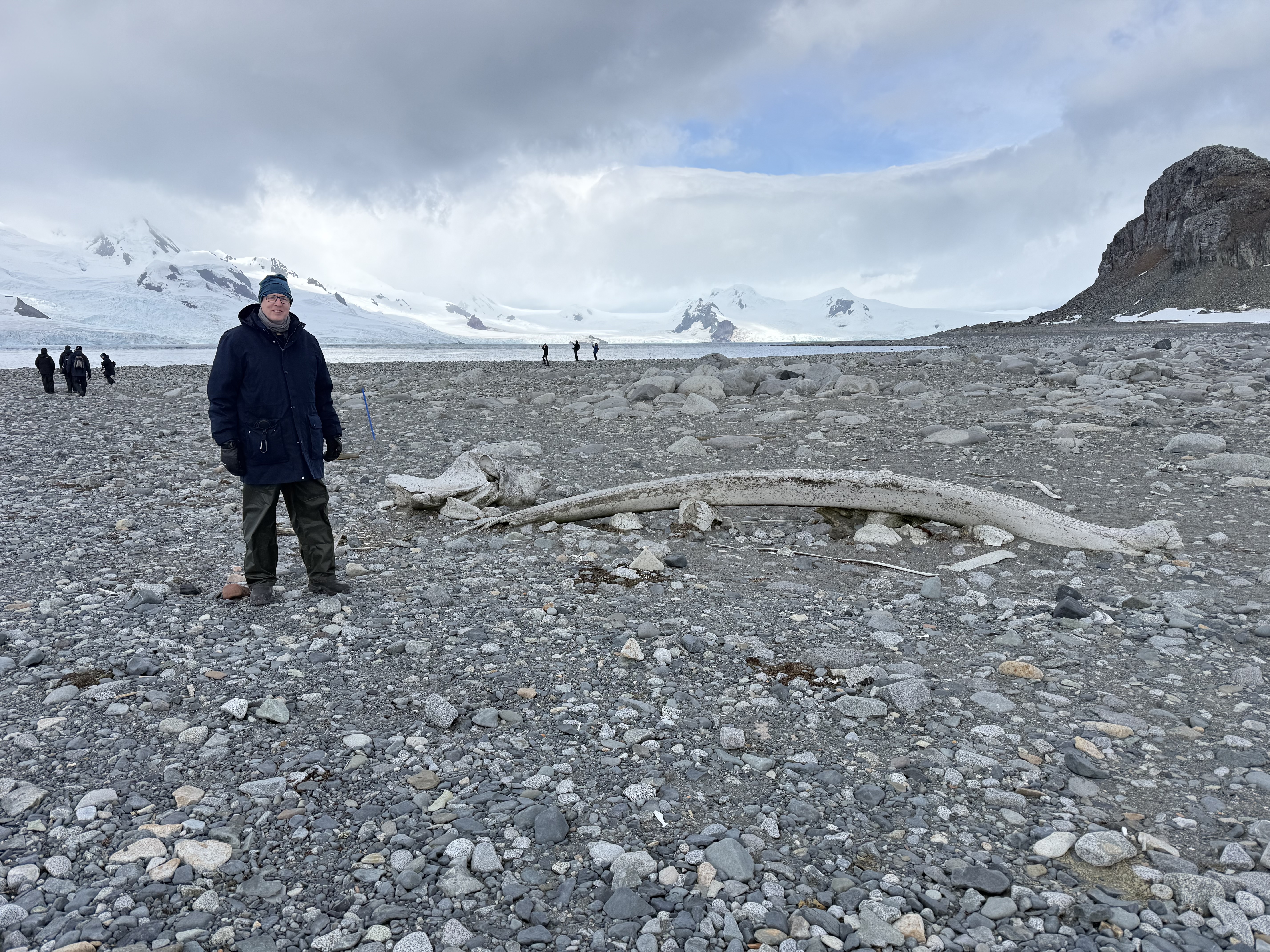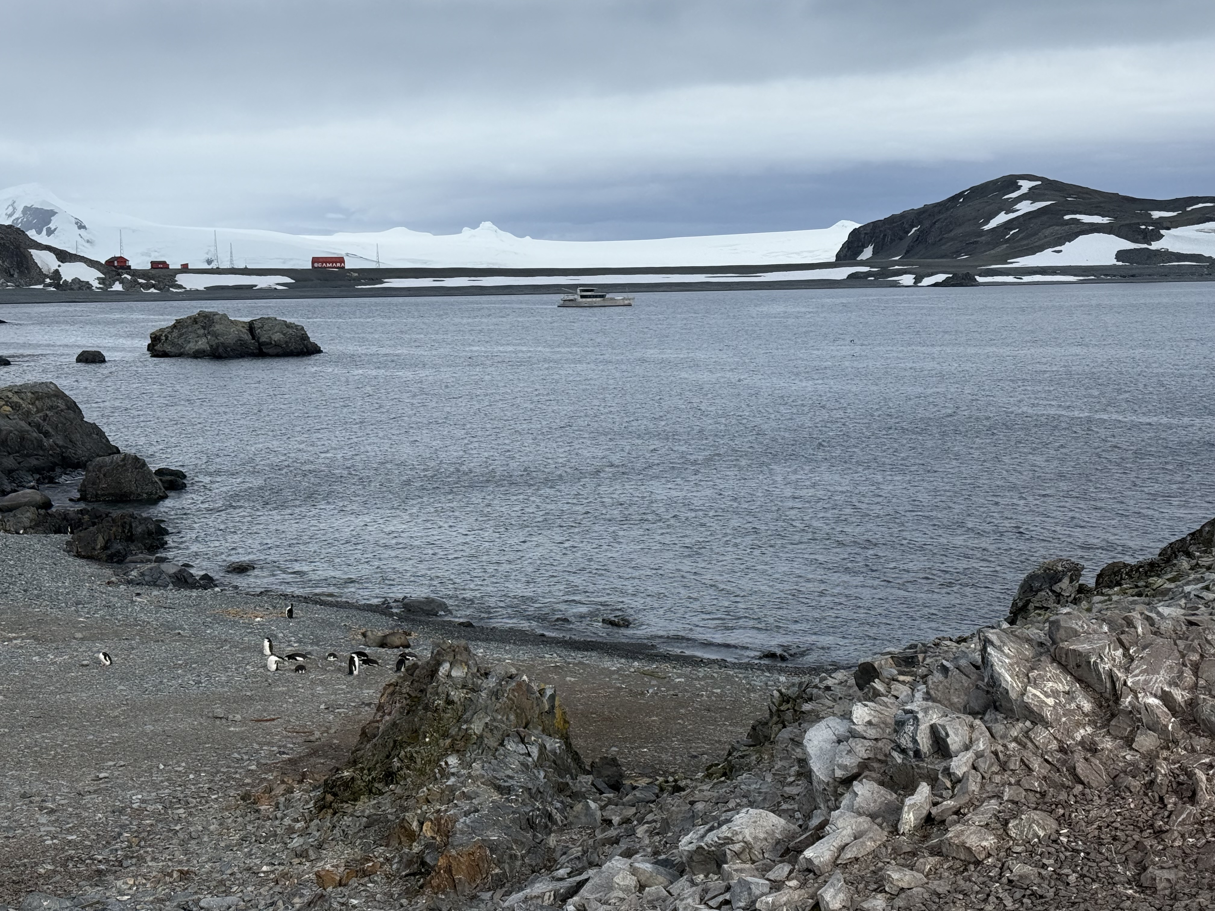We enjoyed a nice hike up to the colony, where we also saw Elephant, Fur, and Weddle Seals on the beach and in the water. The Fur Seals were playing King of the Rock. We then walked to the far end of the landing where we got to meet some interesting folks. There is a small Argentinian military base here, and we met a group of Bulgarian researchers who had come ashore on Zodiacs from their ship which was moored in the harbor opposite of our ship. Of course, Marcelo, our esteemed guide and retired Argentinian Admiral, knew the Bulgarian Commander, as Marcelo had once been one of his instructors in a joint operation. So he introduced us and we had a nice chat with them. Marcelo knows literally Every. One.