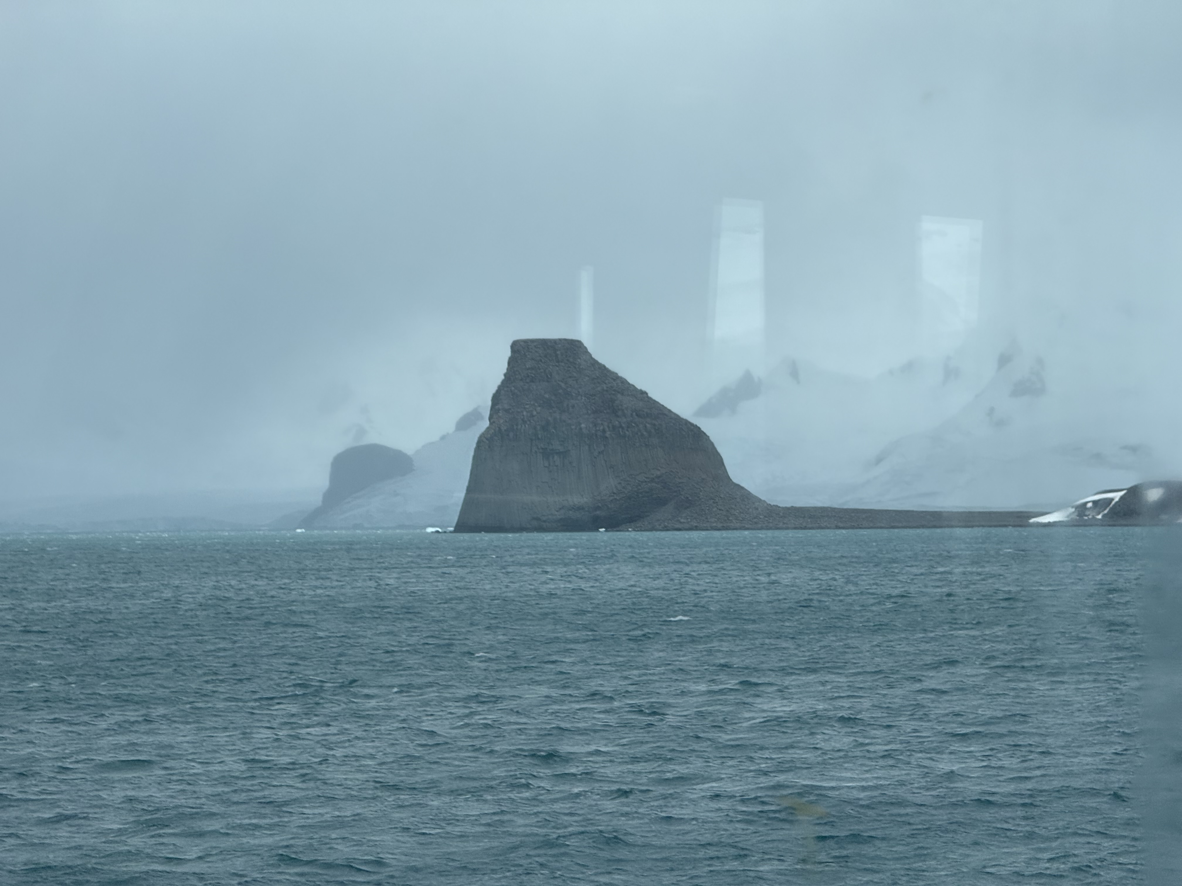 After lunch, we were supposed to have our last landing of the trip at a place called Yankee Harbor, but after assessing the landing site, the expedition team decided the swells were too big to land us safely. The ship’s Captain remarked that he didn’t like seeing the bottom of Ali’s Zodiac as she was assessing the water. They tried really hard to get us out on our last landing, but they just didn’t feel like it was safe enough to do so. So we had a free afternoon, and the staff served us hot chocolate with rum and whipped cream outside on the deck while we sailed past the South Shetland Islands. We also sailed past Edinburgh Hill, which is the remains of a millions years old volcanic eruption, and past Livingston Island, which is the first land discovered below 60 degrees south latitude. Livingston is historic, as prior to its discovery, most of the world assumed there was a land mass at the southern end of the globe, which was termed Terra Australis Incognita, but no such land had ever been discovered. The discovery of Livingston Island in 1819 marked the beginning of Antarctic exploration.