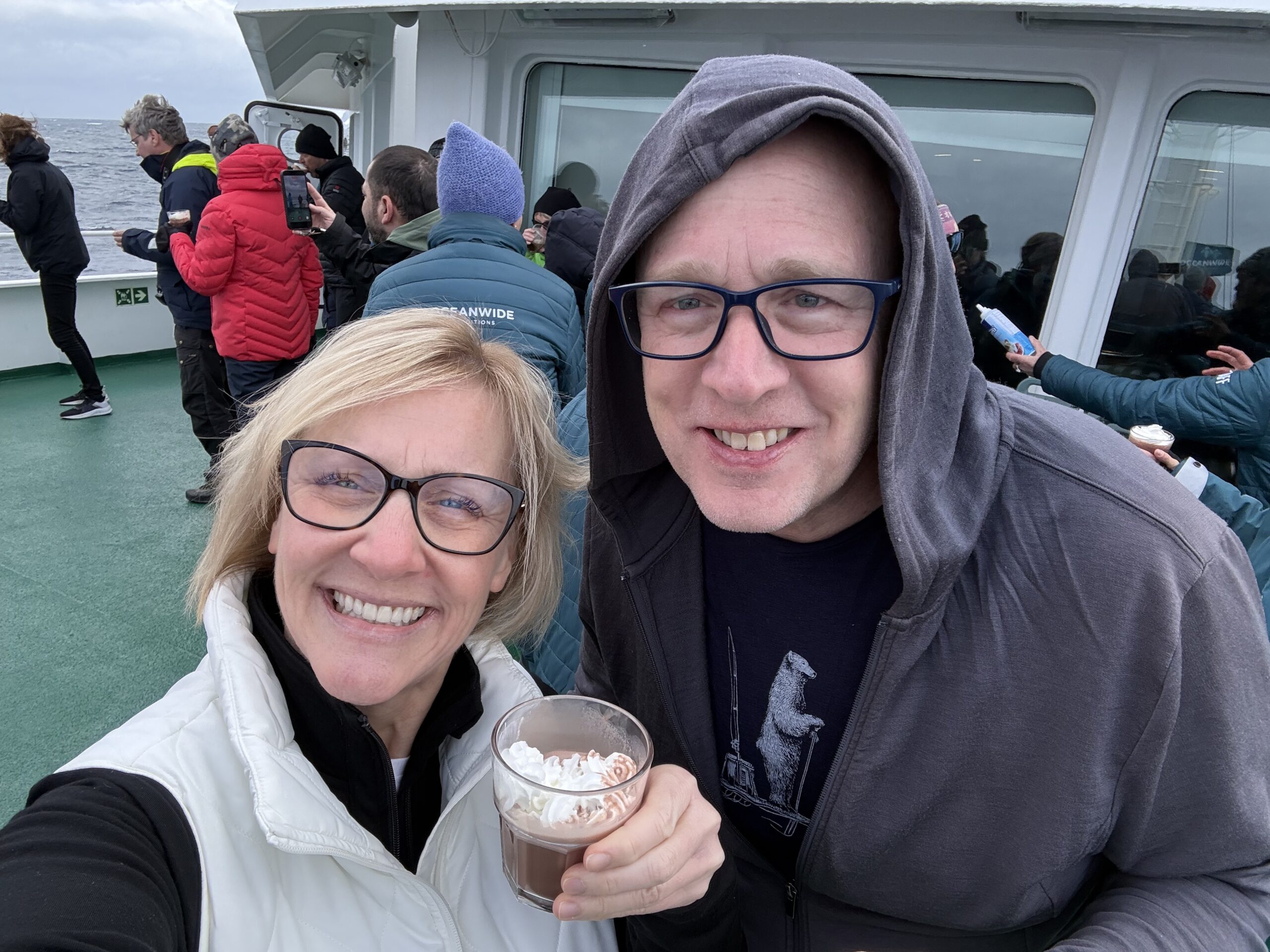 Leaving the South Shetland Islands marks the beginning of the Drake Passage. Cue the music… dun, dun, dun! The dreaded Drake Passage is the body of water between Cape Horn and Antarctica where the Pacific meets the Atlantic and extends into the Southern Ocean. It is notoriously one of the most dangerous bodies of water for ships to traverse. This is due to the fact that the Antarctic Circumpolar Current, which runs through the Drake, meets no resistance from any land mass. Waves can top 40 feet, and the Drake has the reputation for being the most powerful convergence of all the seas. All voyages that go to Antarctica from Ushuaia will cross the Drake at least once, and some cross it in both directions, so it’s basically a rite of passage for folks who sail to Antarctica. It takes roughly 48 hours to cross the 500 mile Drake Passage. It is referred to as the Drake Lake when the passage is smooth, and the Drake Shake when the passage is rough. We began our crossing of the Drake under relatively “normal” conditions, with winds about 29 mph, lots of swells, and some rocking and rolling. None of this was any worse than what we had already experienced on the way to the Falkland Islands and South Georgia, and on our way south to Antarctica. The forecast is decent, so we will see what the next two days bring as we make our way back to Ushuaia.