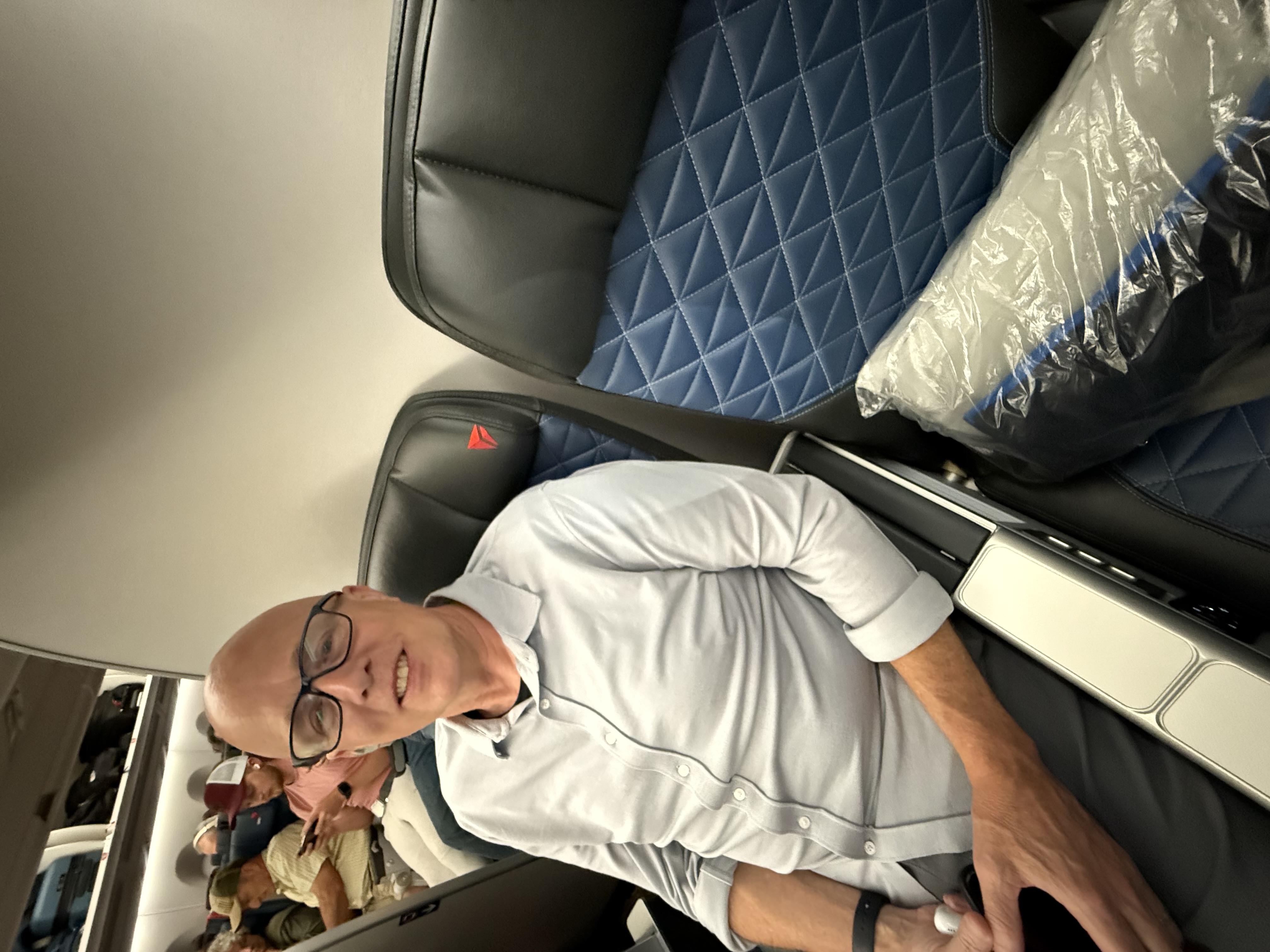 We boarded the flight, gave out our customary flight crew gifts, i.e. three bags of individually wrapped candy we purchased at the airport because we didn’t want to lug it from SDF, and found our fancy Premium Select seats. That’s Delta’s premium economy cabin where you get actual silverware, but not an actual bed. They wanted…$14,000…each… for the D1 seats that lay flat. Several people who apparently inherited millions of dollars from a long lost great aunt were happy to get those.