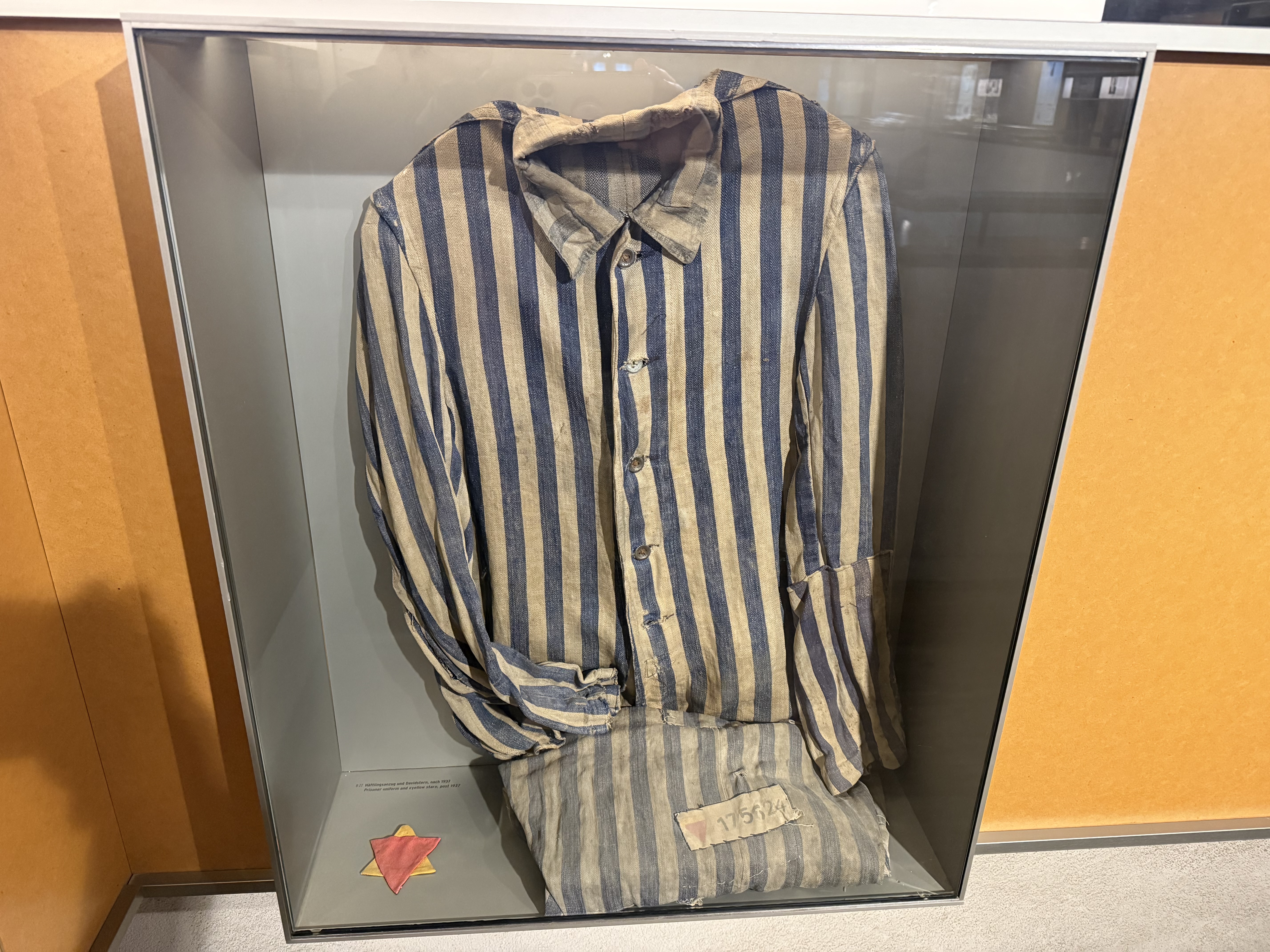 Jewish prisoner uniform, red triangle for political prisoner, yellow triangle for Jewish, together they formed a Star of David