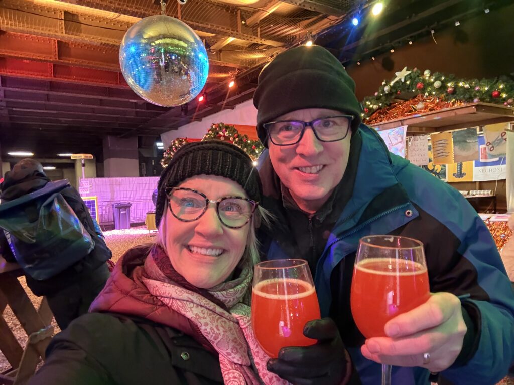 We had dinner in Oranienburg, then retuned to Berlin. We needed a pick me up after that sobering experience, so we headed to the LGBTQIA Christmas market and found some Hot Aperoles (the best drink at the markets), and watched some crazy cold people singing Karaoke for a bit before heading back to the hotel. It feels good to be warm again!