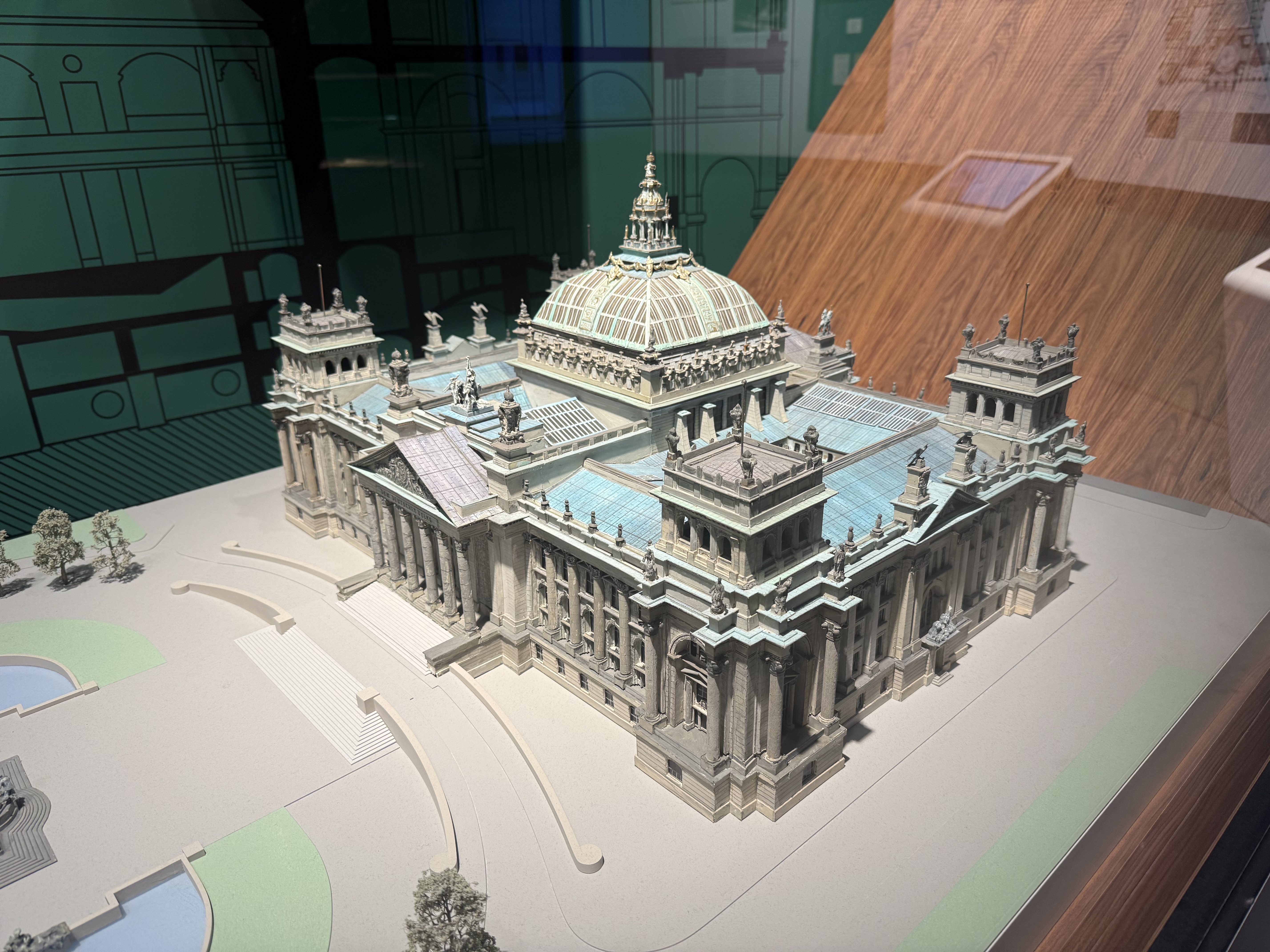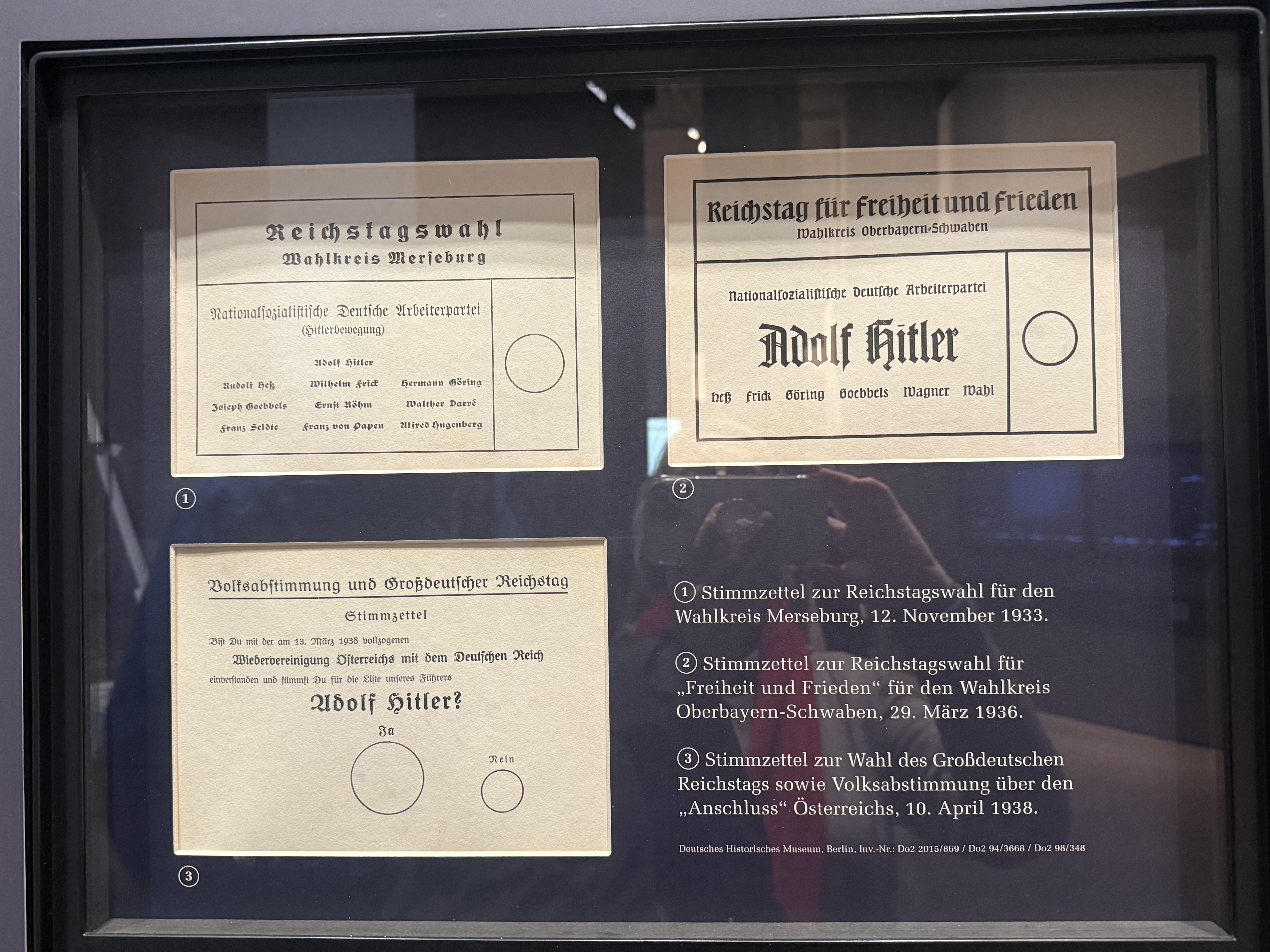 Inside the German Church is the Bundestag Museum, which tells the history of the German parliament. It was in German, so we spent quite a bit of time using Google translate to understand it. One of the most interesting displays was the federal ballots for the elections in 1933, 1936, and 1938, in which Hitler was the only name on the ballot. Hmmm….who do you think you would vote for? And would you dare check “nein” or “no” on that 1936 ballot???