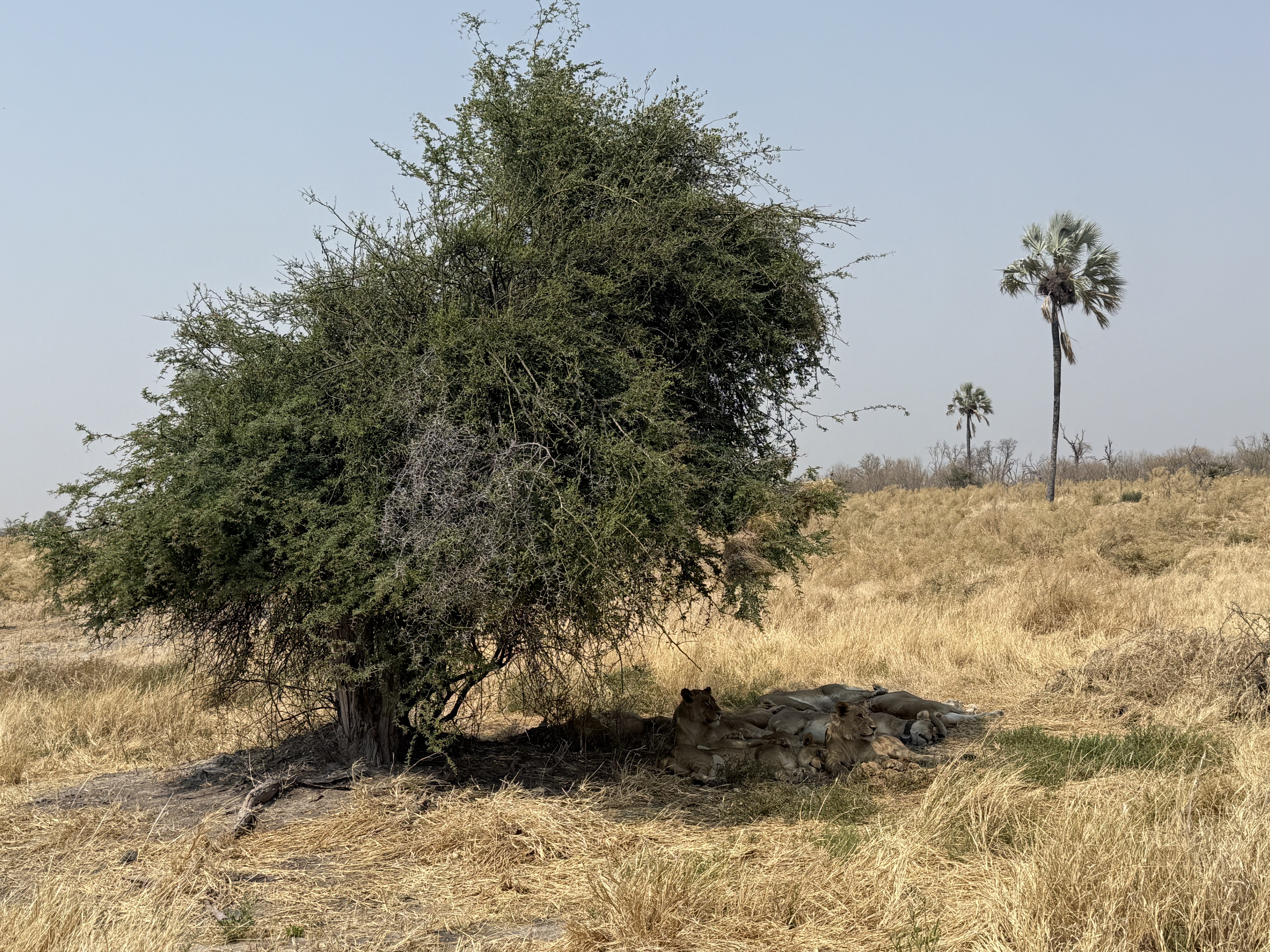 On the way to the camp from Santawani International Airport (really just a dirt airstrip), we immediately encountered a pride of eleven lions napping under a tree. The pride is well known to the guides. One of them is collared for research, and the guides told us she lost two babies just after they were born in June. They weren’t sure if it was a predator or natural causes. We are still on the hunt for leopard, cheetah, and rhinoceros, and hope to get lucky here in the delta.