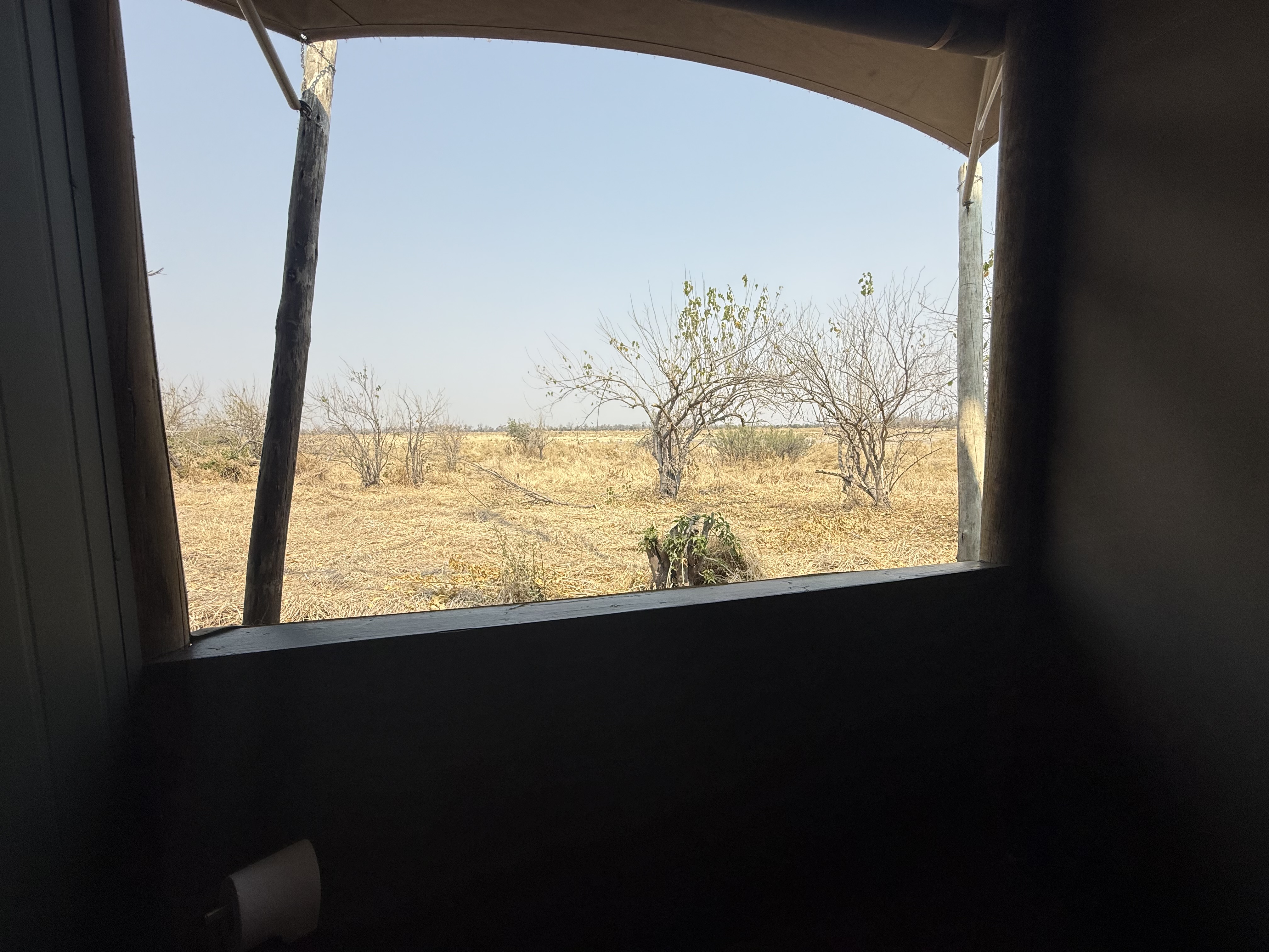 In this camp, like all the others, we have to be escorted to our tents with a guide and are not allowed to leave until the wakeup call in the morning. During the day we can walk to and from our tents by ourselves, but we have to stay vigilant. Steve and another guest encountered an elephant on the path today and had to wait until she passed before they could walk to the lodge. At Lufupa, I was leaving my tent one morning and had to run to the neighboring tent and jump on their porch when I encountered a mama warthog and three babies right outside my tent. Basically, a lot of things want to kill you here.