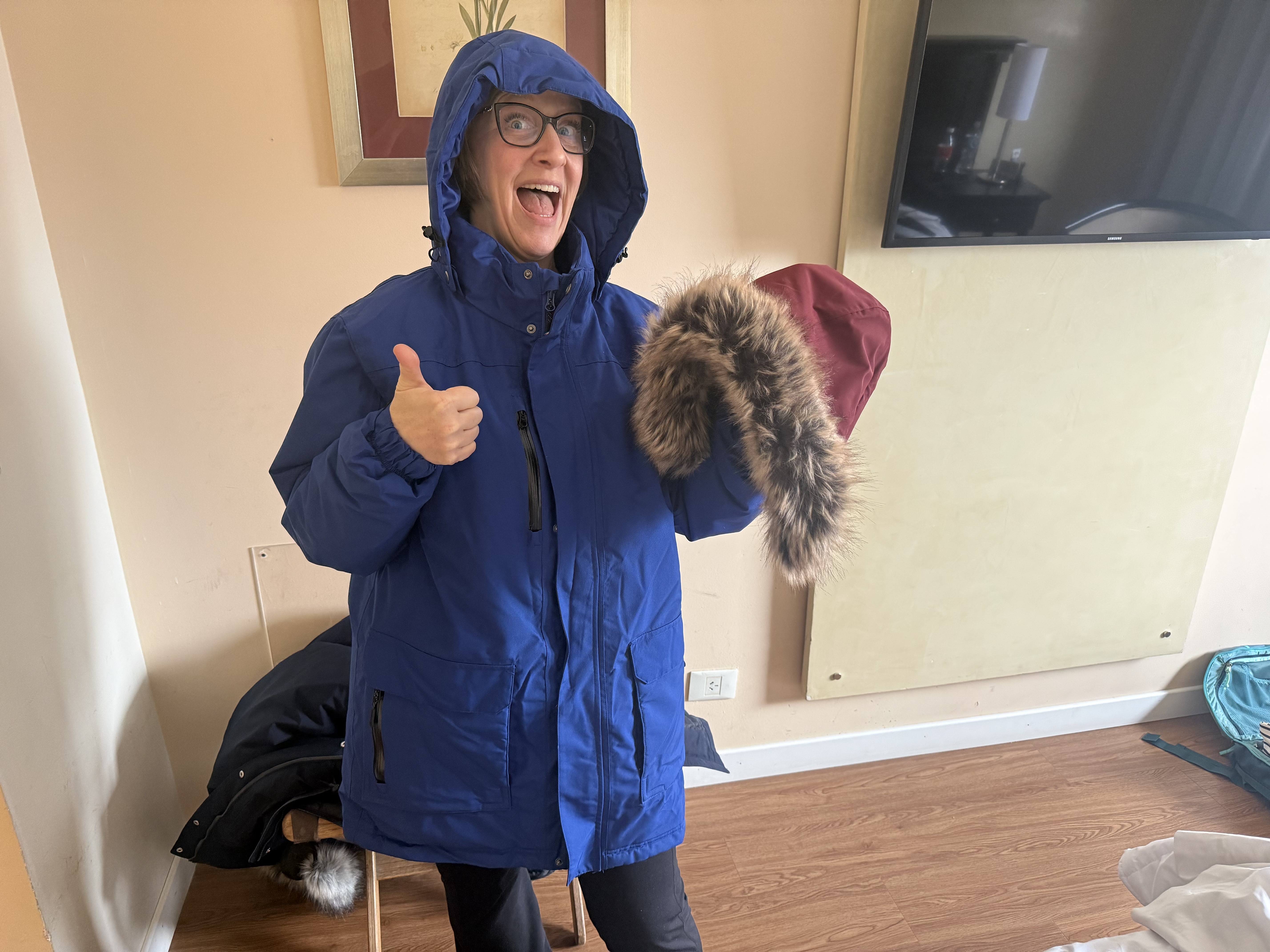 Yep! It’s on the back seat of my car in the airport parking lot back in Louisville, KY! We were going to carry/wear them on the flights since we’re packed in a carry on and a backpack each, and they wouldn’t fit in our bags. We did remove the hoods and pack them since they were kind of bulky to carry around. It’s definitely a first world problem! The beauty of Antarctic cruises is the you can rent any of the cold weather gear you may need, including parkas, waterproof pants and gloves, boots, etc. So I’ve already rented a parka, along with ski goggles which we had already rented. We don’t ski, and couldn’t see buying them for one trip, especially since we may not need them. Boots are provided on the ship. The rental company recommend by our travel agent is https://at.newheadings.com.
