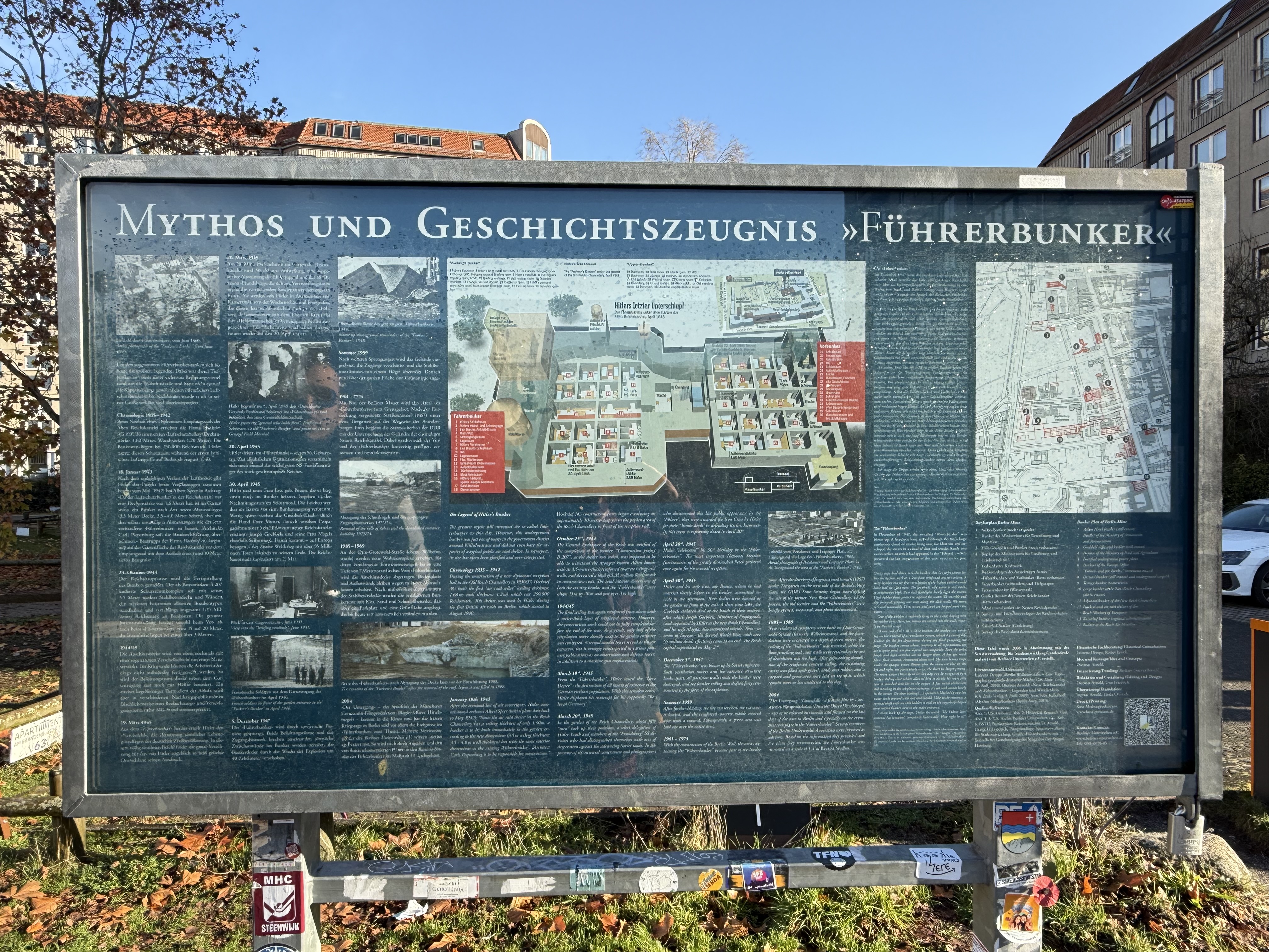 Next we visited the location of Hitler’s underground bunker. It has purposefully not been reconstructed or made into any kind of tourist attraction, so as not to draw any attention to Hitler himself or become any kind of gathering place. The bunker was bombed by the Russians, filled with concrete and covered, then turned into a parking lot. A simple sign marks the location.