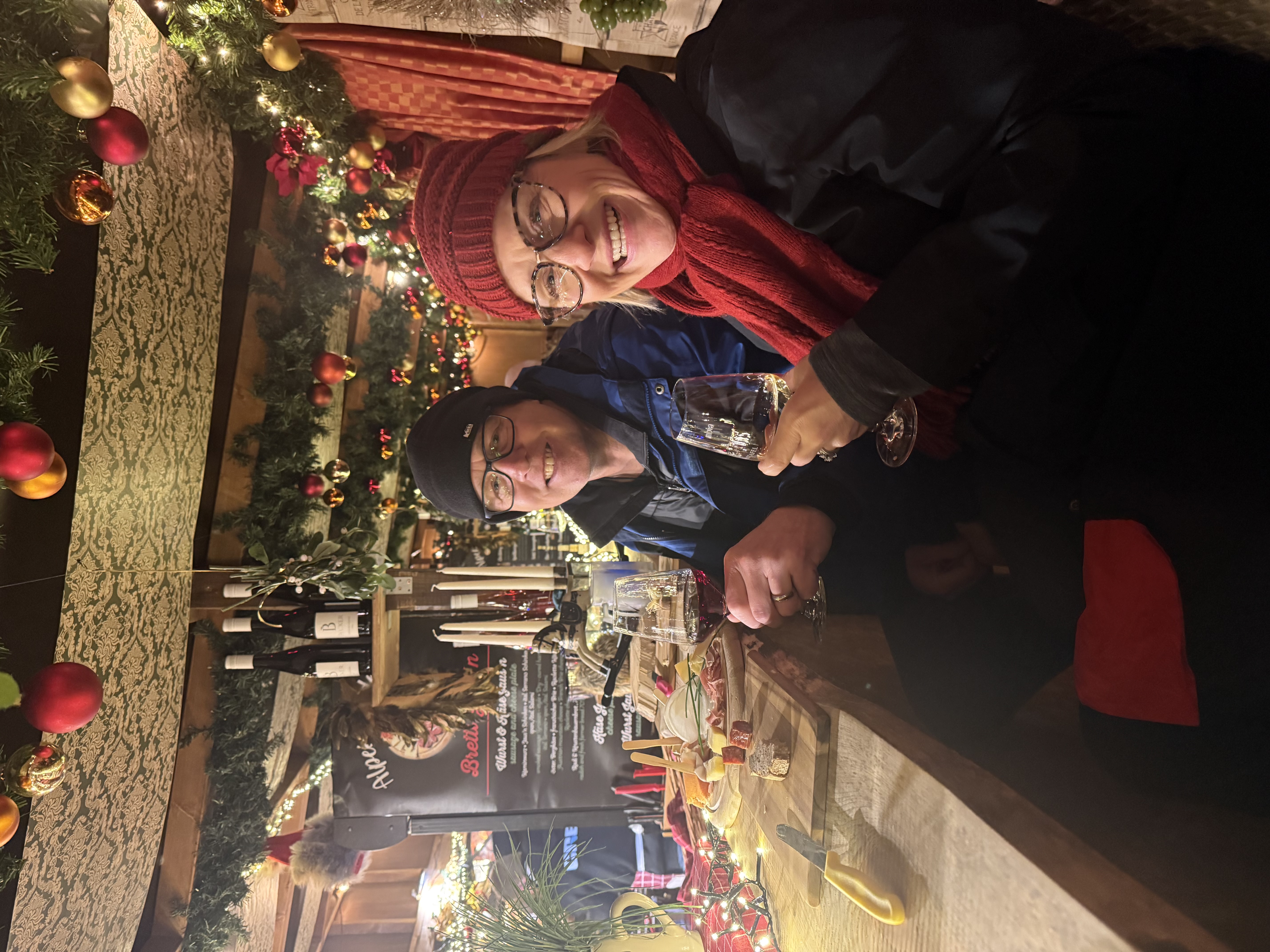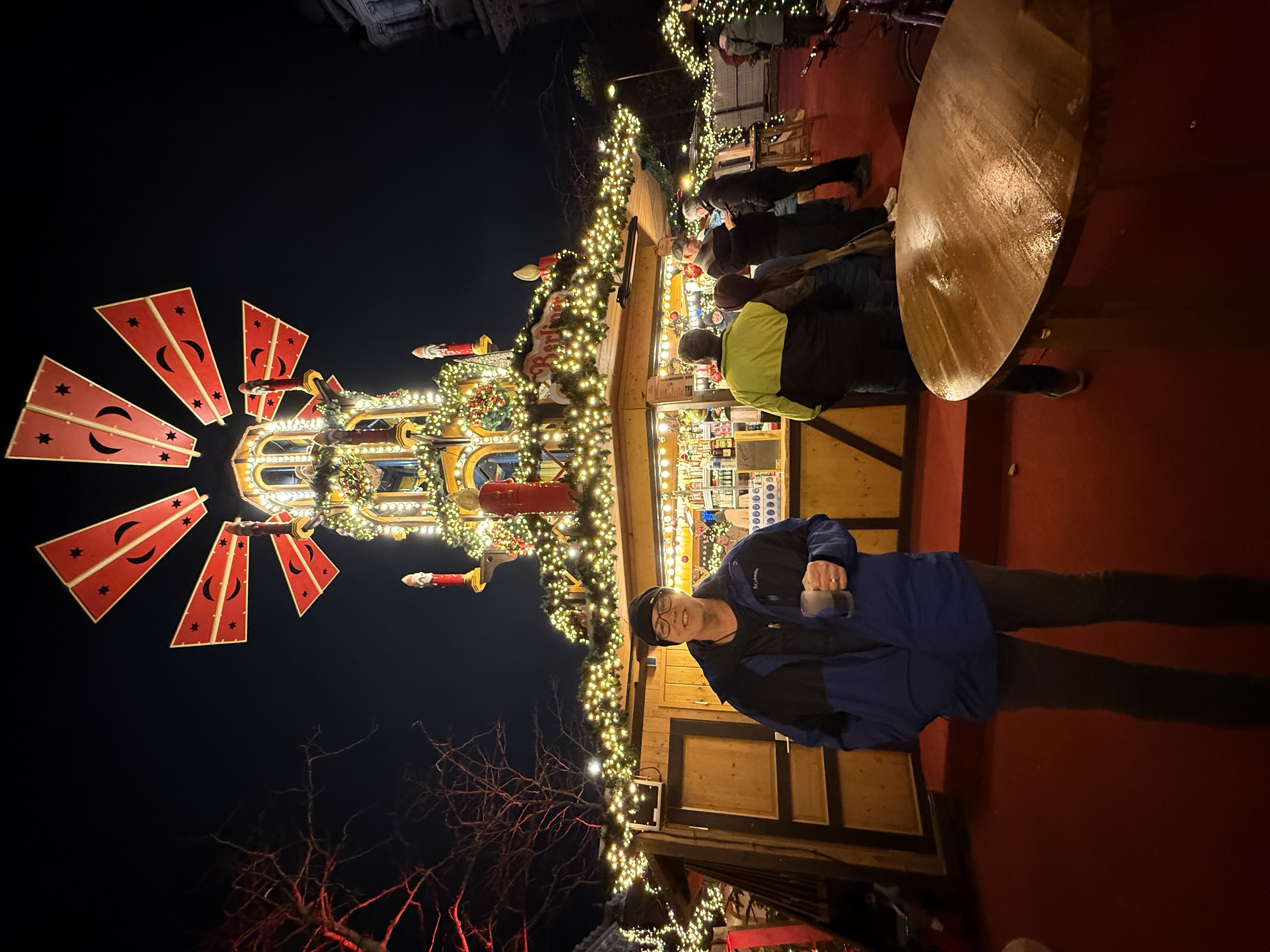 After lunch, we visited Gendarmenmarkt and its twin French and German churches, Museum Island, the Red Town Hall, and the Humboldt Forum. It had begun to rain at this point so we will go back for some photos in a couple days. After a brief rest at the hotel, we went to the Humboldt Forum Christmas market for some festive food and drinks. It was quite chilly and windy here to day with a high around 41 deg F, and we have snow forecasted for tomorrow. Perfect weather for Christmas markets!
