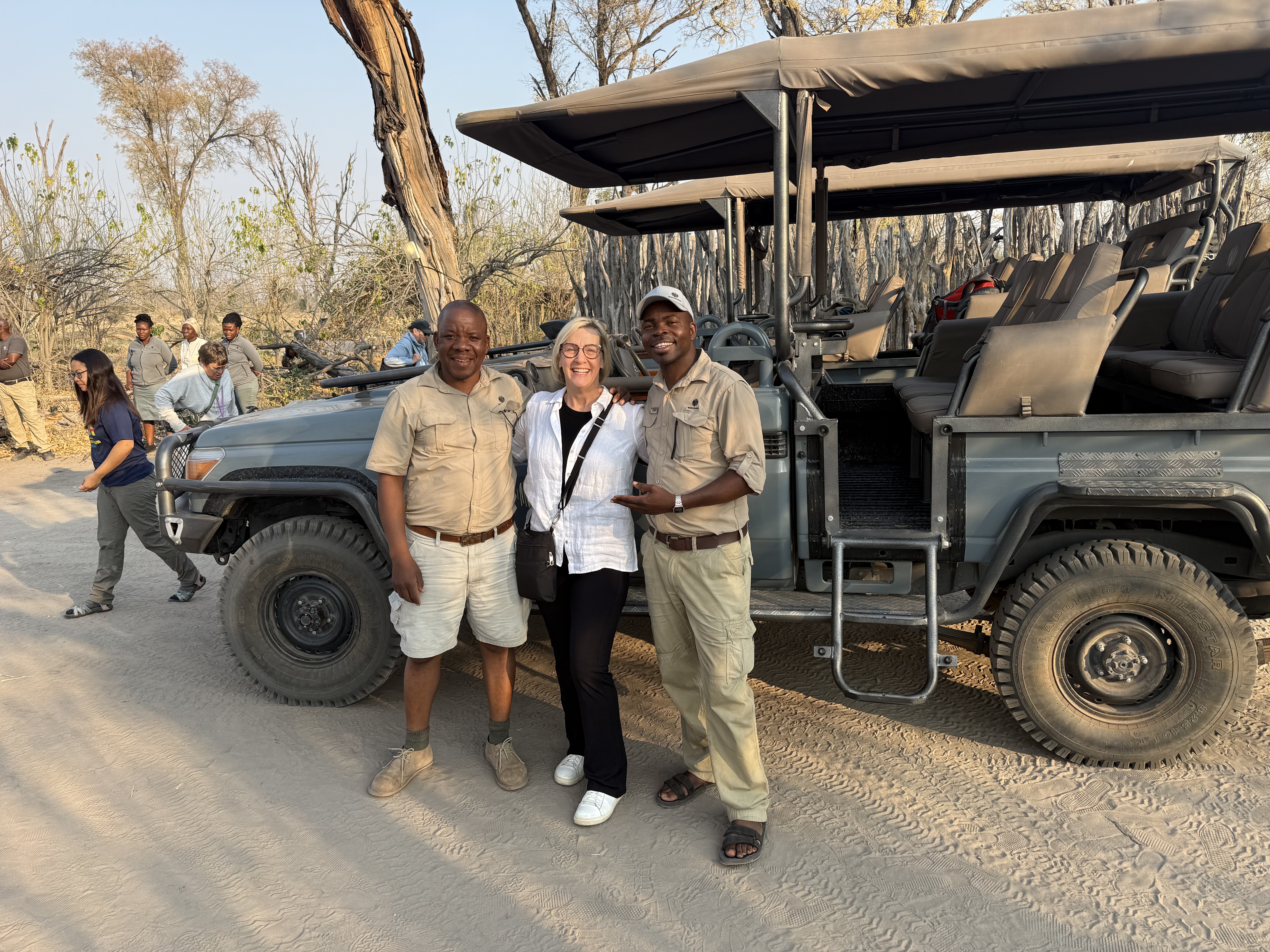 Today we left Santawani camp and flew back to Kasane Airport in Botswana on our last bush plane ride. The camp is only about a 10 min drive from the air strip, but on the way we finally saw all three leopards together. Mama was out hunting with her twins. Leopards and cheetahs hunt in the morning as opposed to lions who hunt at night. We didn’t have enough time to watch them, as our planes had just come in and we needed to get going. We had such a great time with our knowledgeable guides Ona and Fannah. They will be missed.