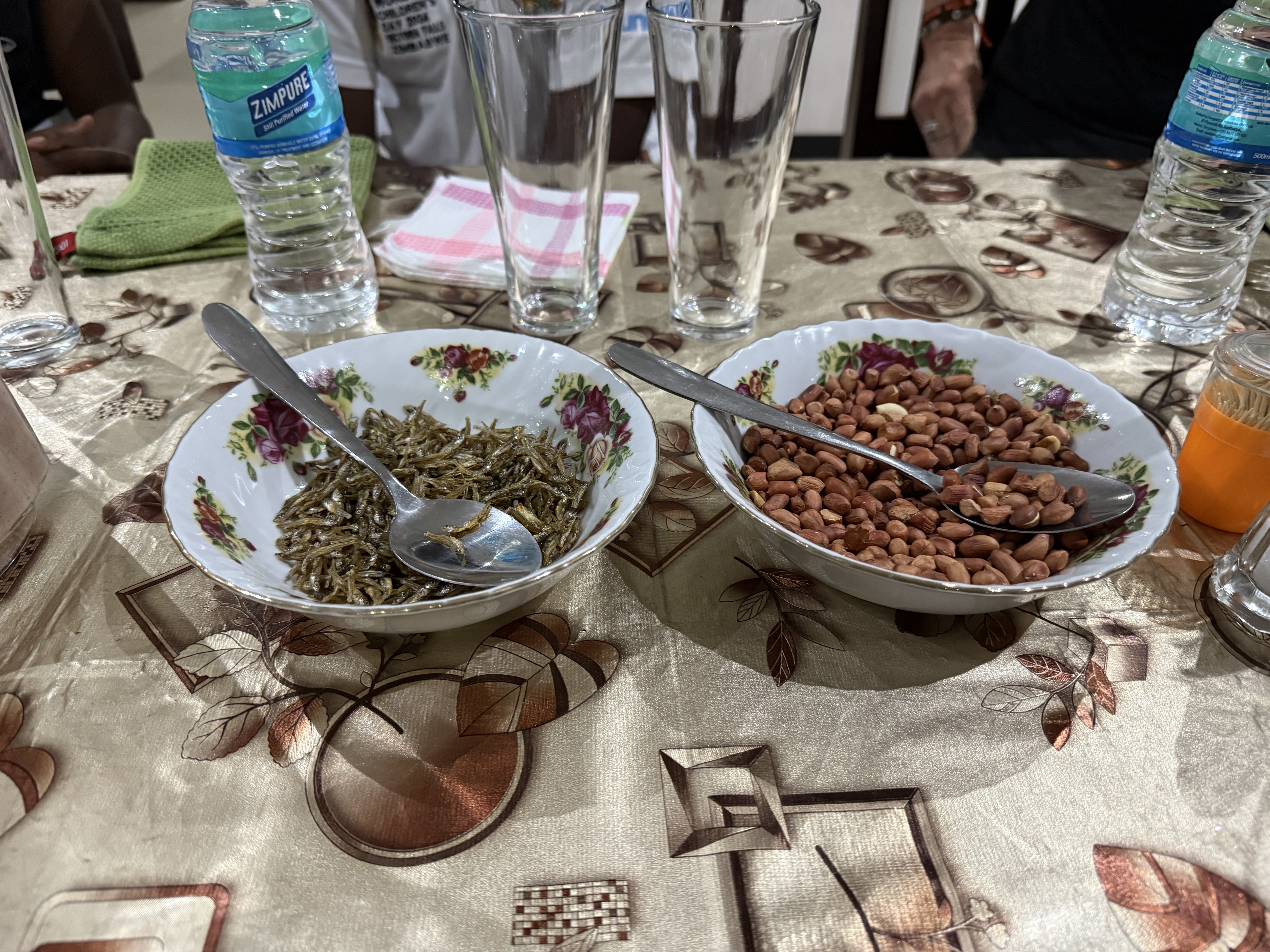 Appetizers of Kapenta (fish) and peanuts…Yum!